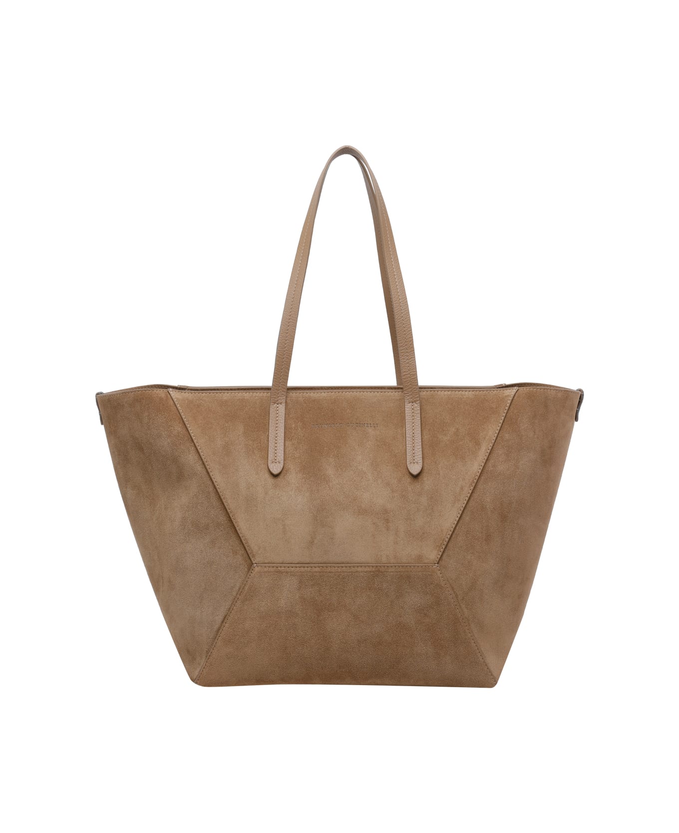 Brunello Cucinelli sesamo BC Duo suede tote bag, zip closure, inner removable pochette, 2 shoulder straps, suede model Composition: 100% Calf Leather