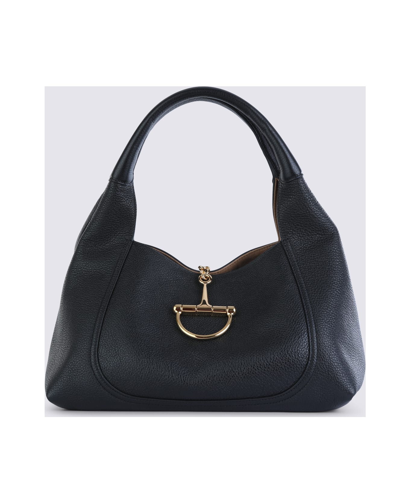 Black leather Softbit tote bag from Gucci featuring gold tone Morsetto detail, shoulder strap, main compartment and hidden pocket. Composition: _, 100% Le