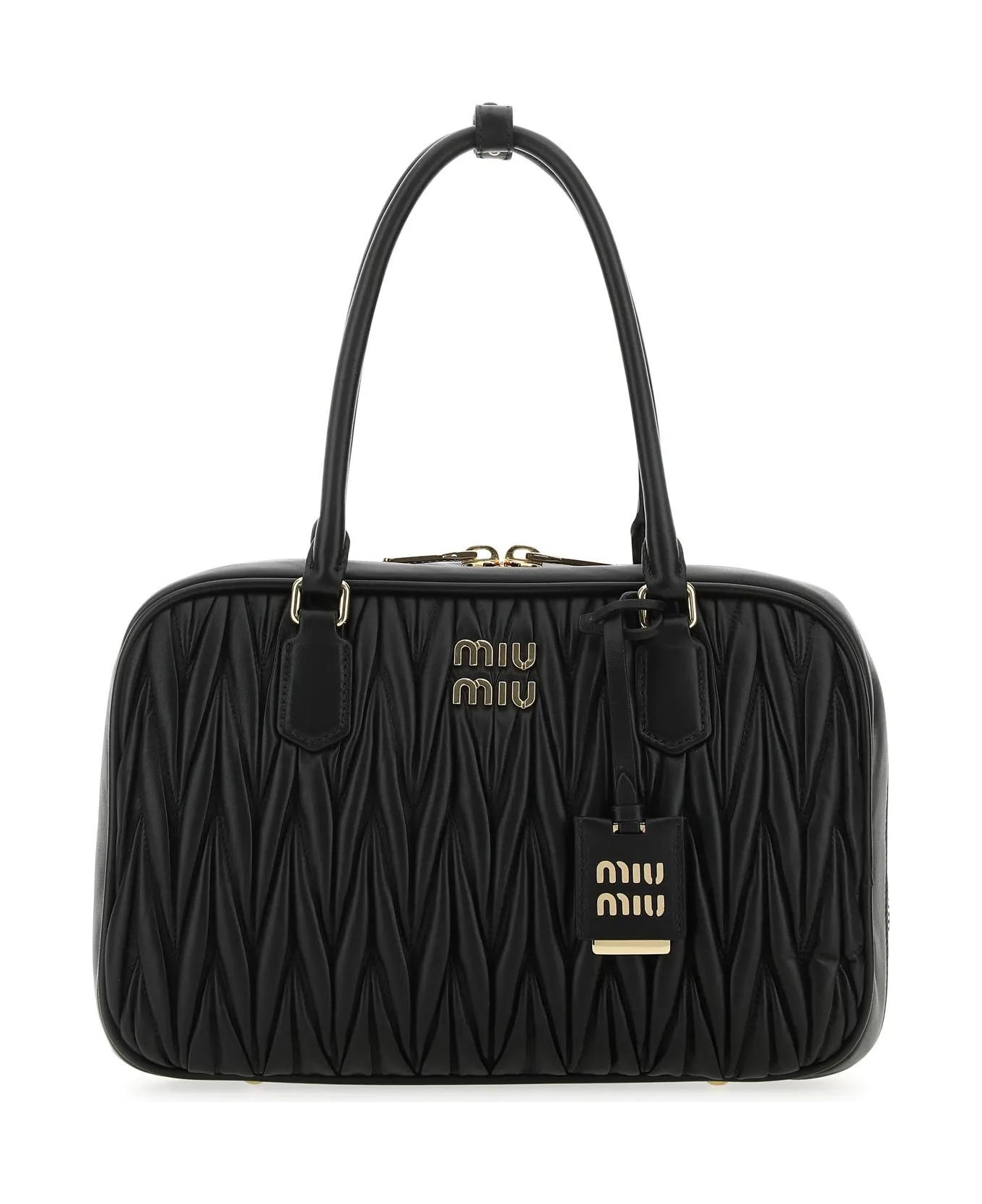 Handbag realized matelassé nappa leather enriched by metal lettering logo at the front and detachable tonal leather accessories. - Two tonal round handles - Adjustable detachable tonal leather shoulder strap - Zip and lock closure - Lined interior with two patch pockets - Protective metal feet Composition: Exterior: 100% Nappa leather Lining: 100% Fabric Finishing: Golden metal