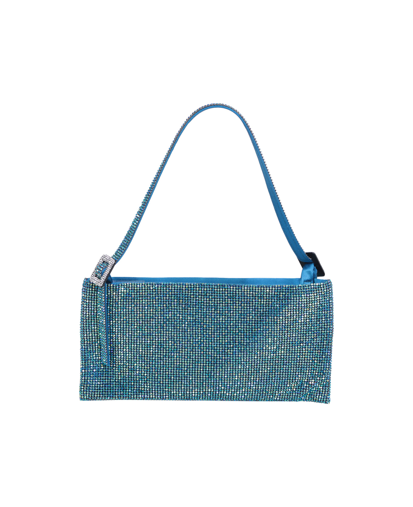 Adjustable shoulder strap. Top zip fastening. Main compartment. Multiple internal slip pockets. Crystal embellishment. Color: Blue