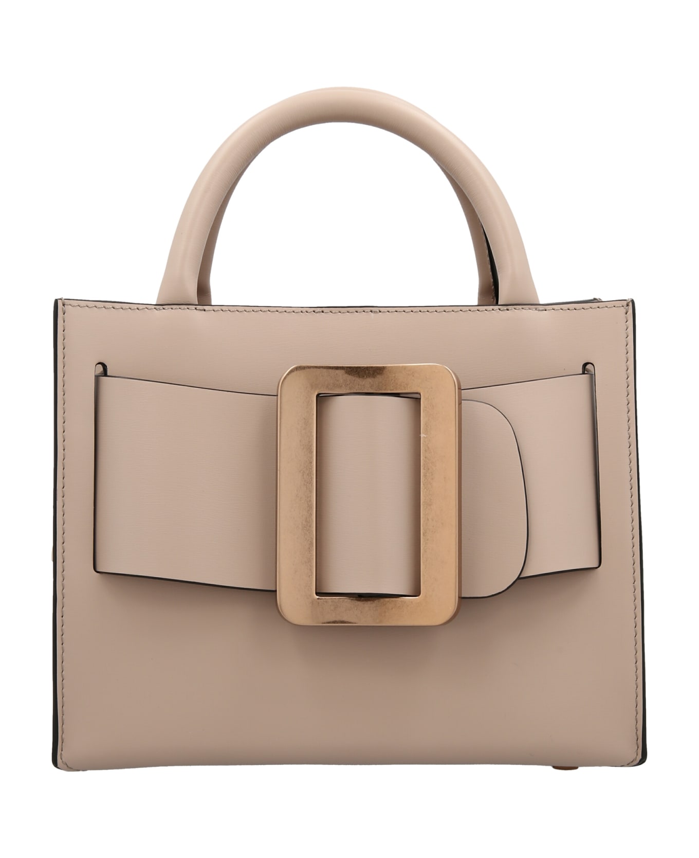 Bobby 23' palmella calf leather handbag with palmled calf leather lining, calf leather lining, metal oversize leather buckle, double handle, n inner handle, snap closure, inner zip and clutch pocket, metal protective feet at the base, djustable and removable leather shoulder strap.