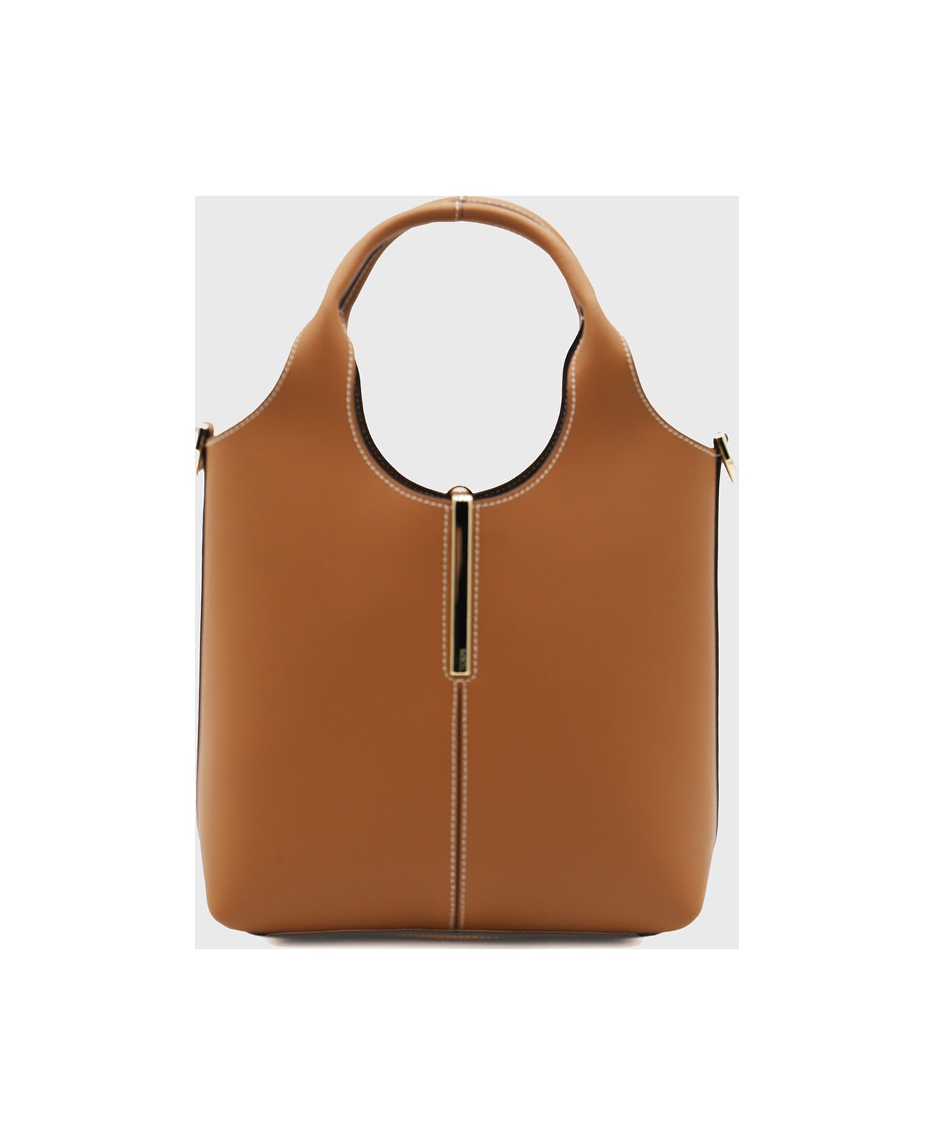 Brown leather top handle bag from Tod's featuring top handles, gold tone hardware, upper fastening, zip details, main compartment and internal pocket. Composition: _, 100% Le
