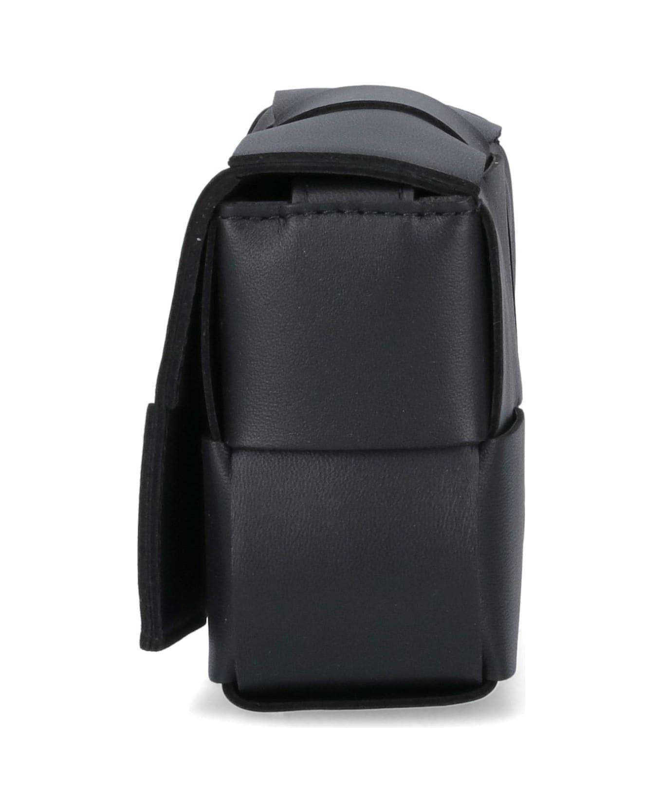 Bottega Veneta 'Candy Cassette' Bag, black leather, woven pattern, magnetic button closure, one adjustable shoulder strap, one main interior compartment, one interior card slot.
