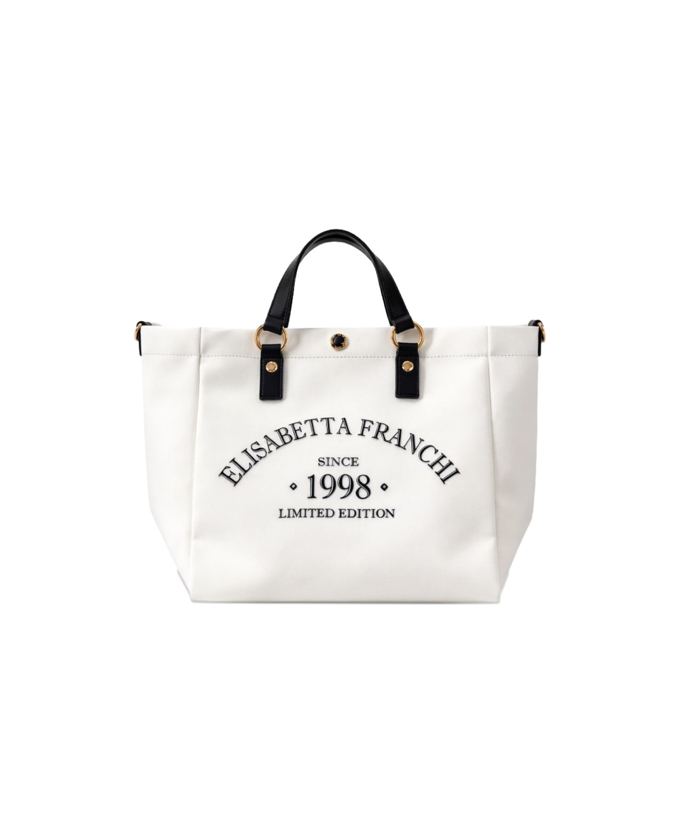 white cotton top handle detachable shoulder strap gold-tone hardware lettering detail