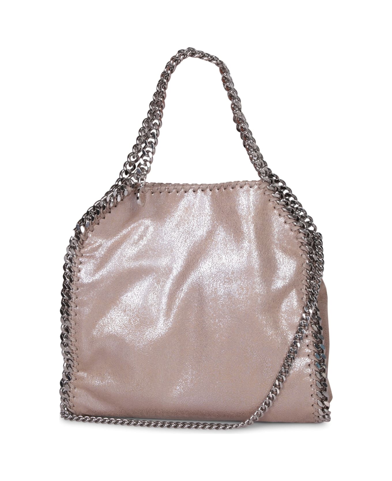 This elegant creation by Stella McCartney is finished in shiny pink faux leather and detailed with the iconic silver chain, serving both as a handle and a decorative trim.