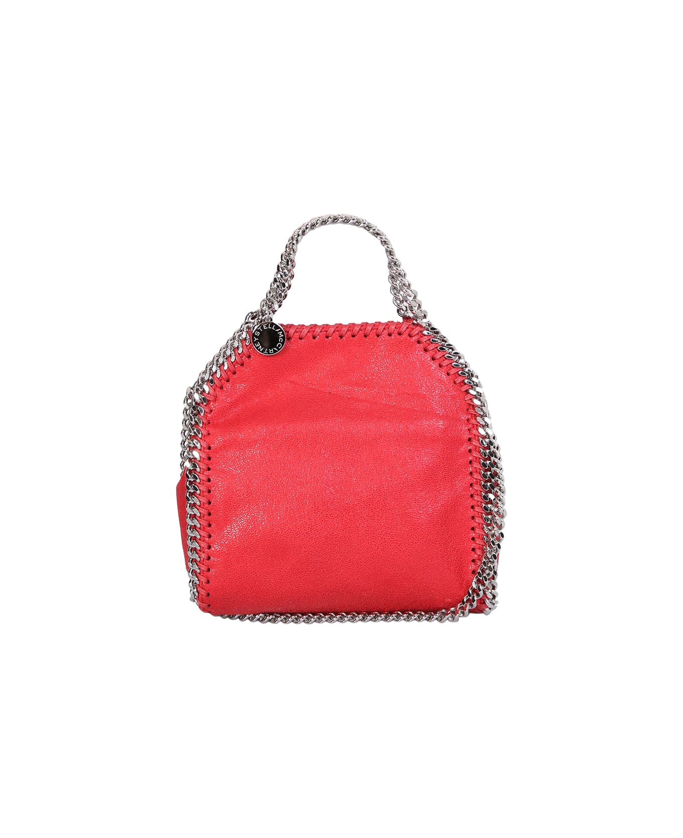 Two chain link top handles. Chain link shoulder strap. Concealed press stud fastening. Internal zip fastening pocket. Finished with logo printed lining. Silver tone hardware. Color: Lipstick red