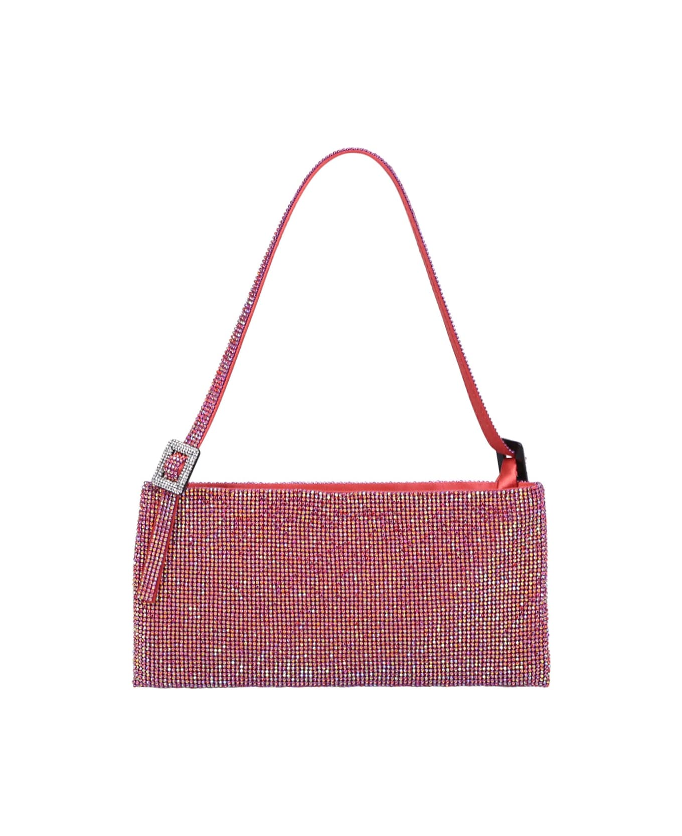 Adjustable shoulder strap. Top zip fastening. Main compartment. Multiple internal slip pockets. Crystal embellishment. Color: Fuchsia
