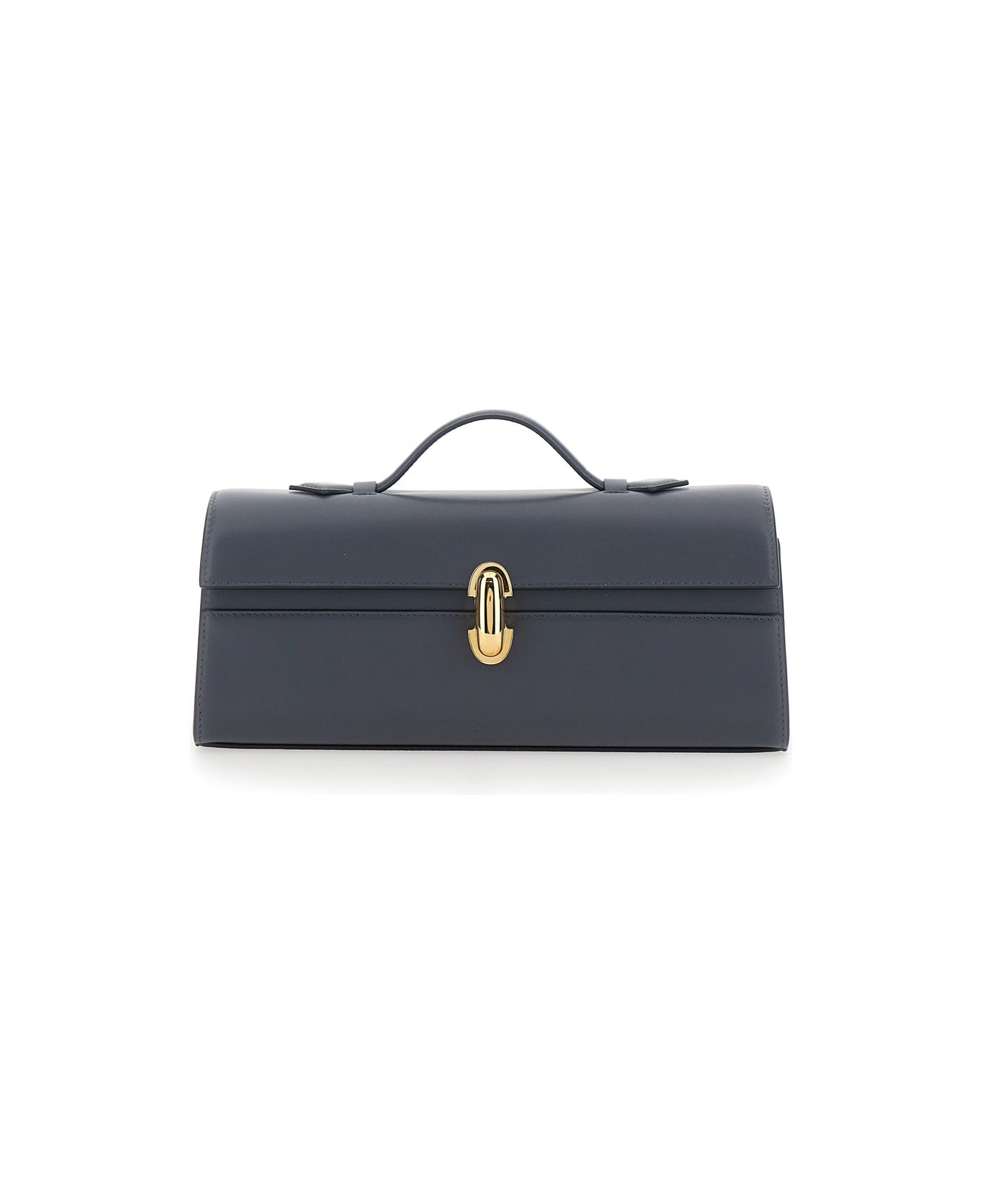 Gray 'Slim Symmetry' clutch with a zip closure on the front. The front features a clean and minimalist design, while the back is smooth with no decorative details. Made of leather. Dimensions: 25 cm x 15 cm x 5 cm.