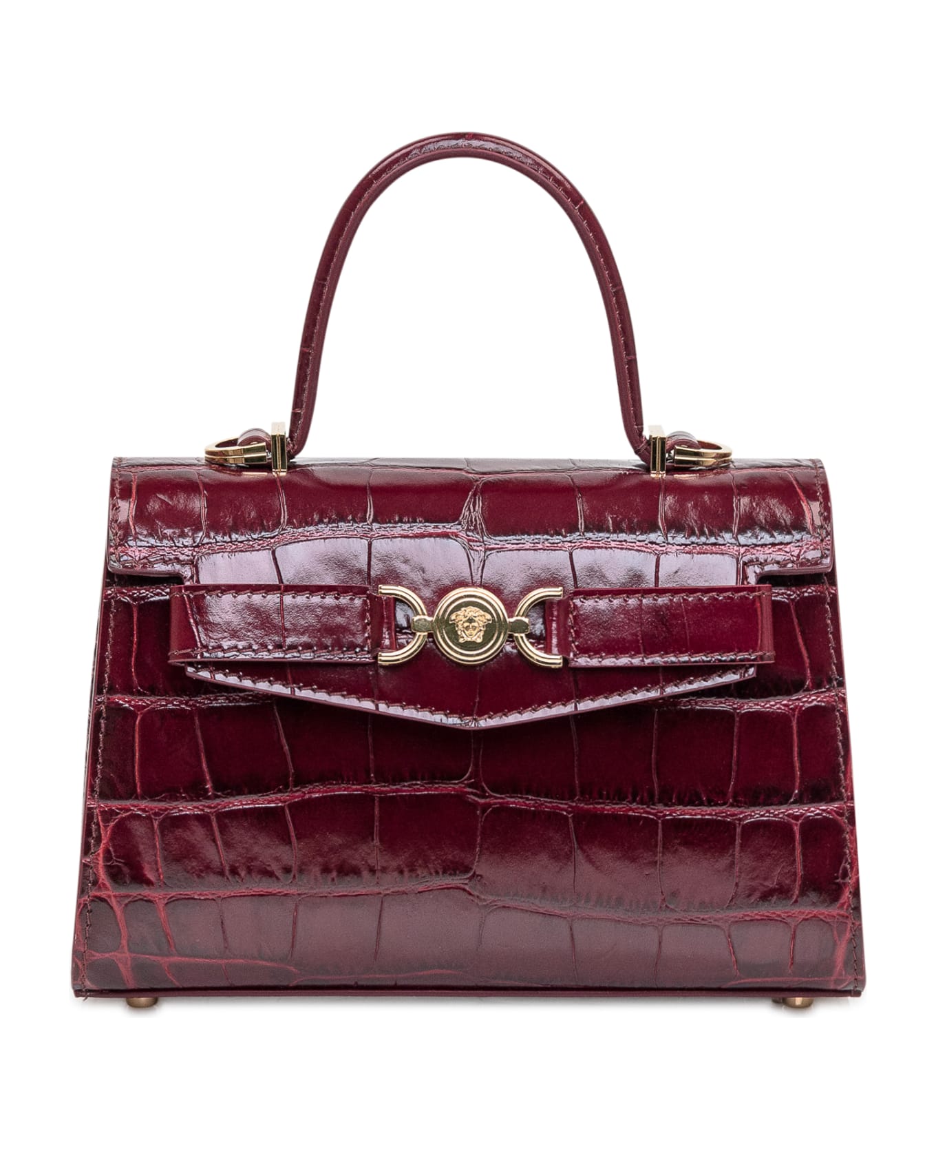 Small leather bag effect python. Versace logo in relief. Two handles. Folding magnetic closure. Two internal pockets. Removable shoulder strap. Metal feet. Composition: Outside:, 100% Calfskin Lining: , 100% Lambskin