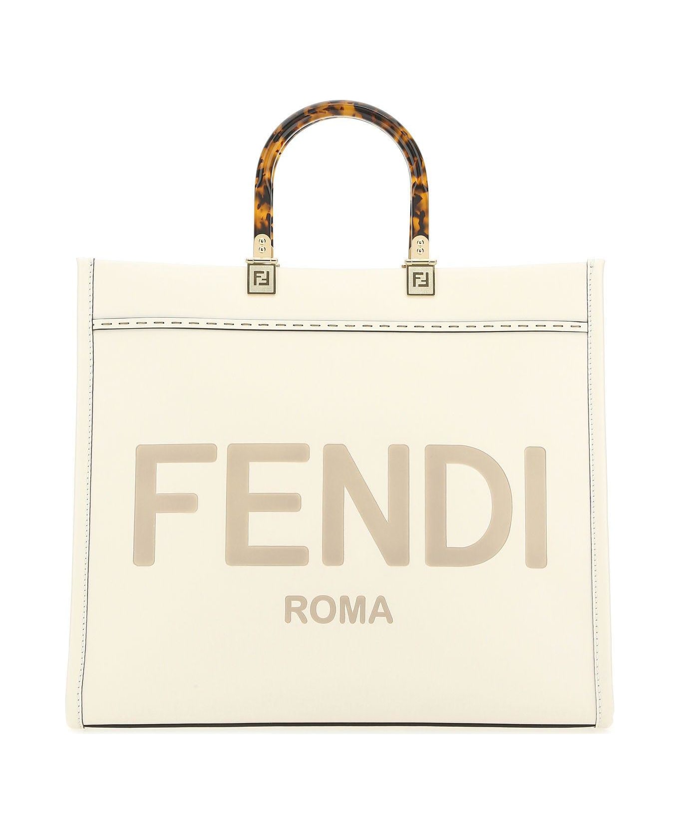 Shopping bag realized in smooth King calf leather characterized by embossed logo at the front. - Two tortoiseshell plexiglass handles - Detachable tonal leather shoulder strap - Suede-like fabric lined interior Composition: Exterior: 100% Calf Lining: 60% Polyamide 40% Polyurethane Finishing: Golden metal
