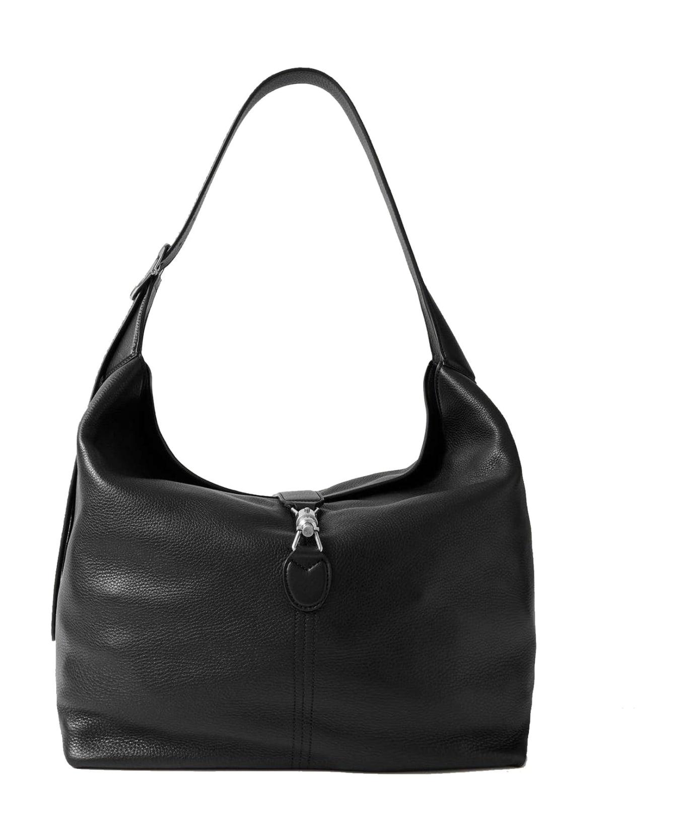 100% calf leather - Adjustable shoulder strap - Textured leather - Height 40 cm - Detachable leather pouch - Piston closure - Length 57 cm - Width 30 cm