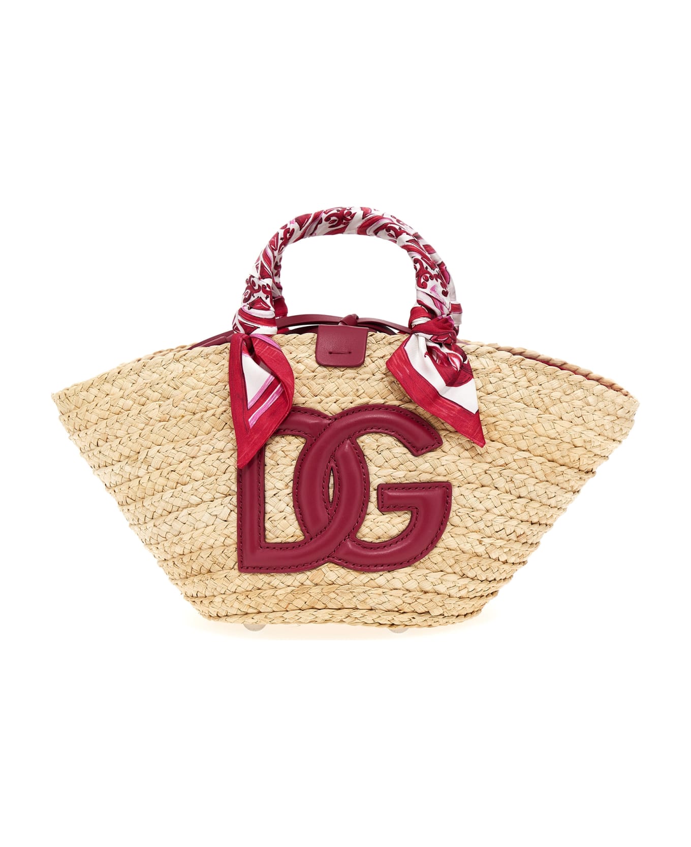 Kendra' small straw shopping bag with front logo, leather handles embellished with removable 'Tile' silk twill, calf leather lace-up closure, and a printed fabric lining. Composition: