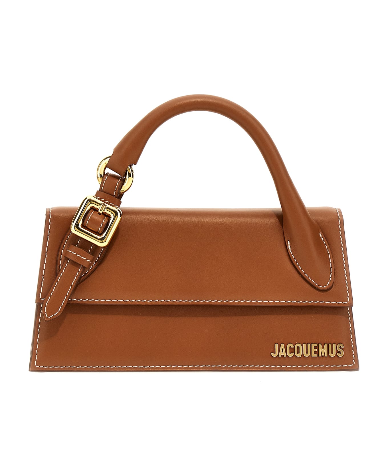 'Le Chiquito long boucle' leather handbag with magnetic flap closure, front metal logo appliqué, fixed top handle with buckle detail, adjustable and removable shoulder strap. Composition: 100% cowhide