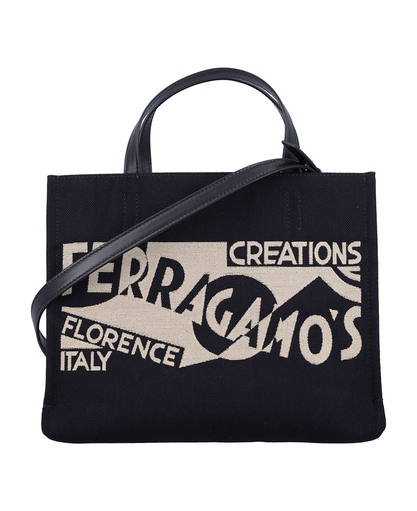 Logo Tote Bag In Canvas By Ferragamo. Featring: