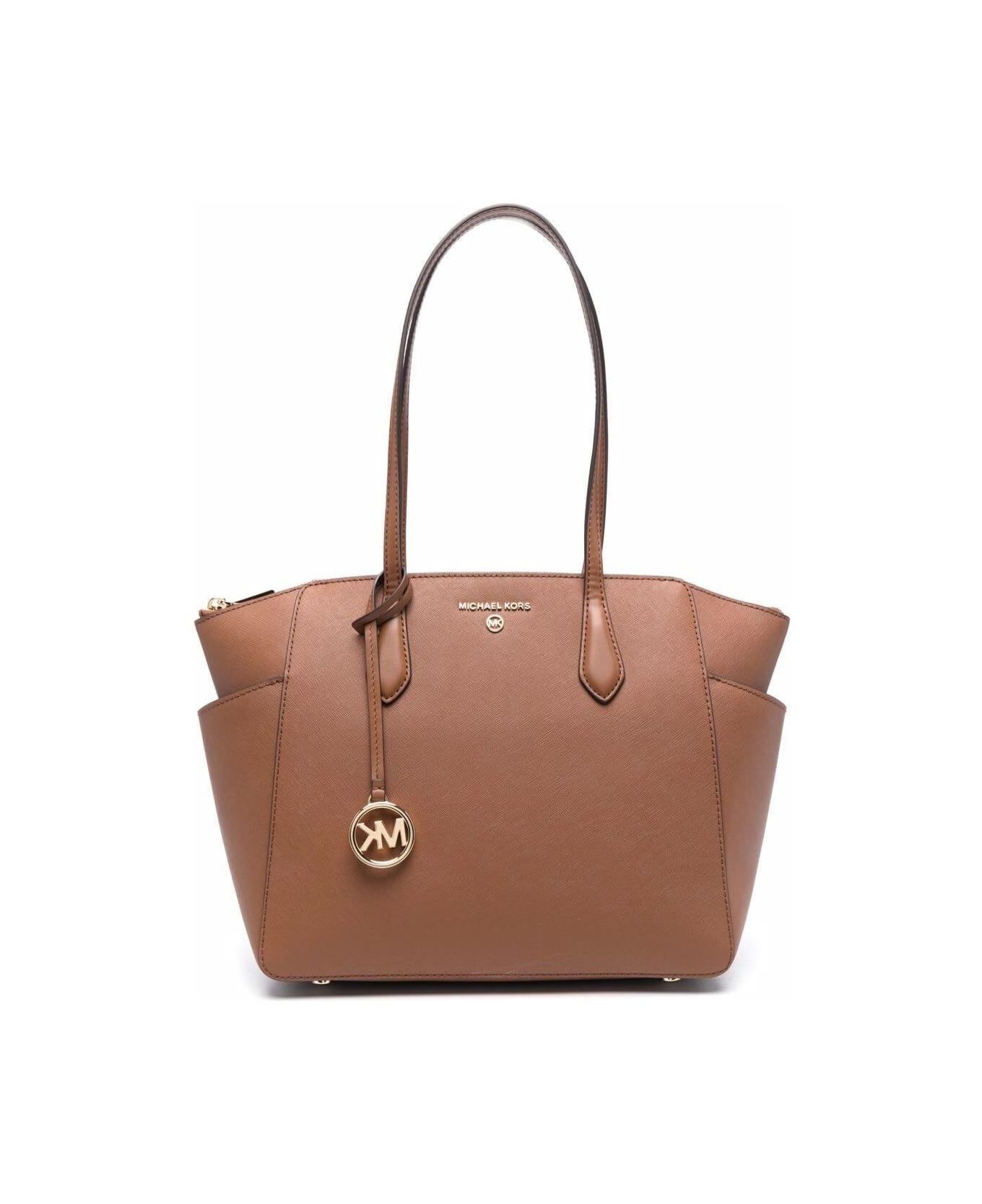 M Michael Kors Woman's Marilyn Brown Leather Shoulder Bag With Logo