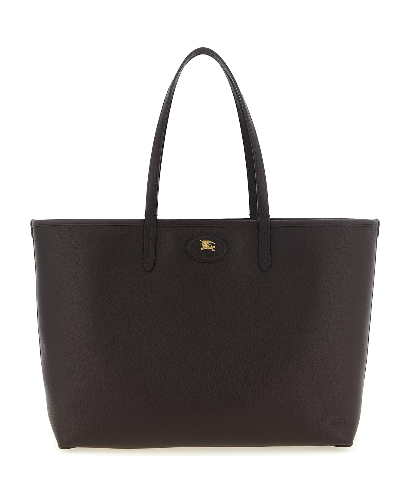 Medium 'Bloomsbury' reversible shopping bag in grain calf leather and woven cotton and linen blend with Burberry Check, leather patch with front metal 'Equestrian Knight Design', double fixed handle, removable clutch. Composition: 100% calfskin leather (Bos Taurus)