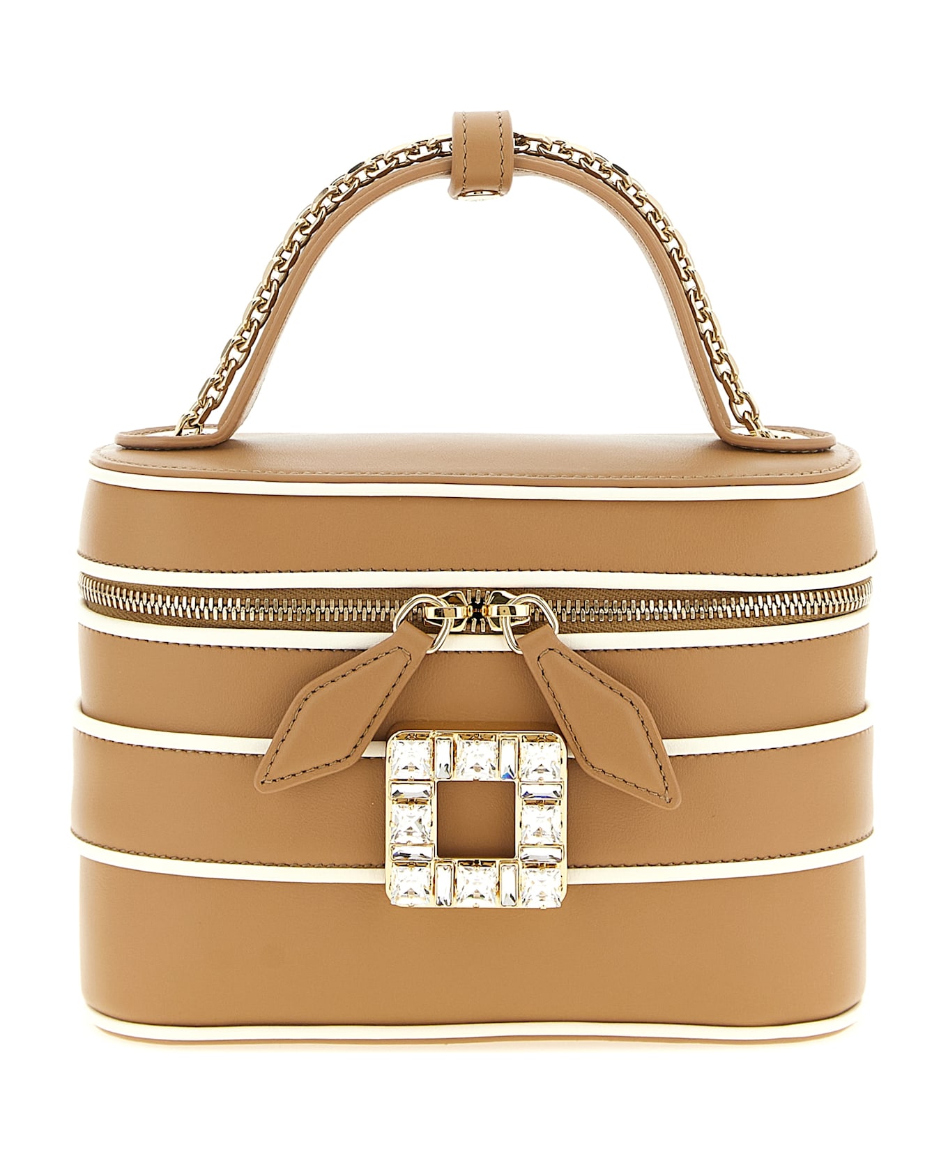'Micro Vanity Très Vivier' leather handbag with contrasting details, metal 'Très Vivier' buckle with front square crystals, fixed handle, zip closure, sliding chain shoulder strap, fabric lining.