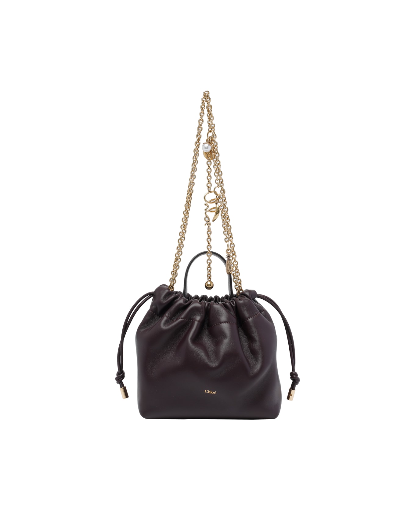 Chloe' dark brown Mini Chloe' Icons shoulder bag, coulisse closure, inner slot, chain strap, leather model Composition: 100% Lamb Leather