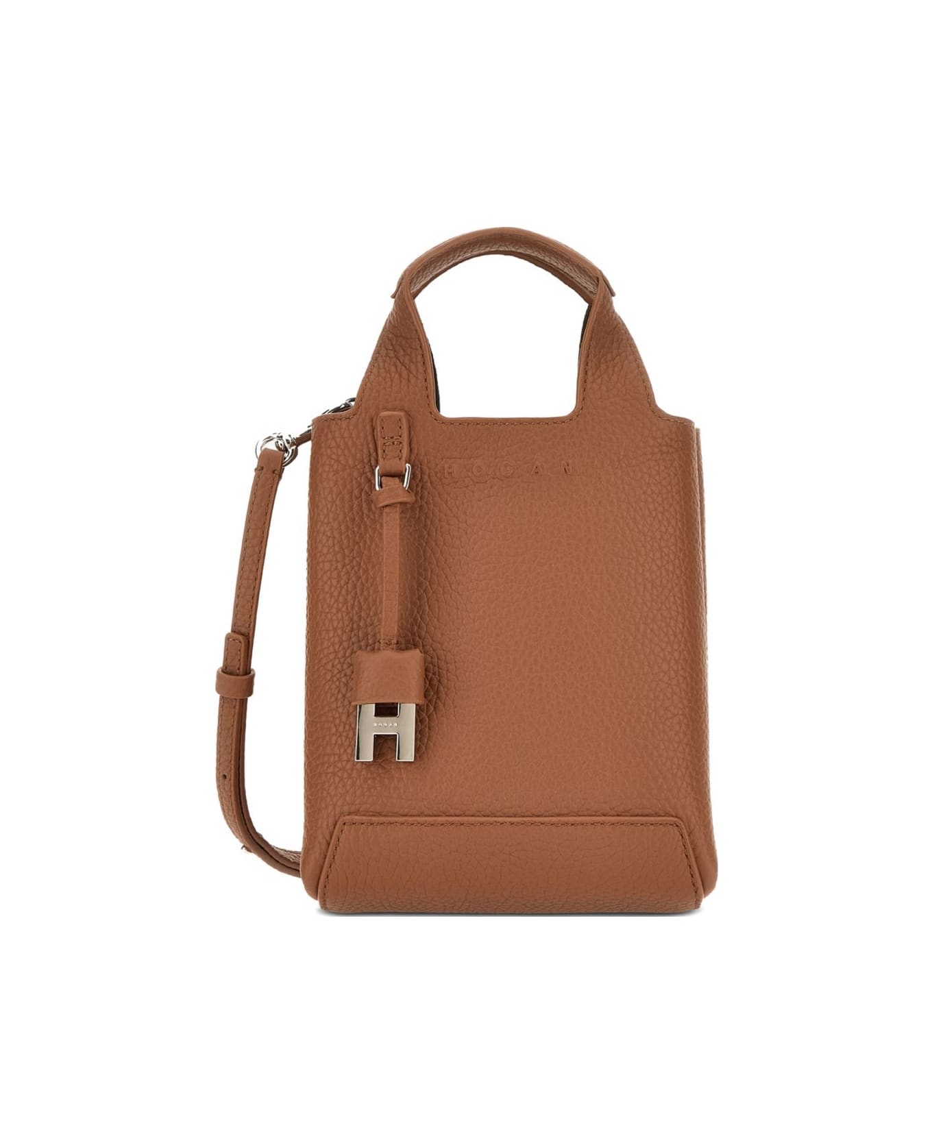Light brown Top handle Detachable shoulder strap Embossed logo Metallic charm Grainy texture