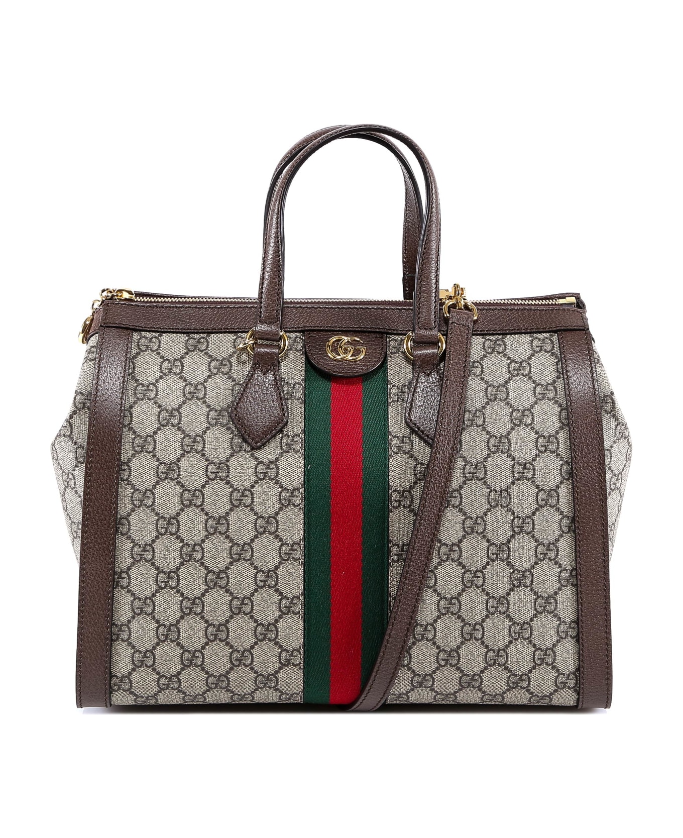 - Two Leather Handles - Gucci Web Band - Zip Closure - Adjustable And Removable Shoulder Strap - Pvc/leather - Hardware : Metal
