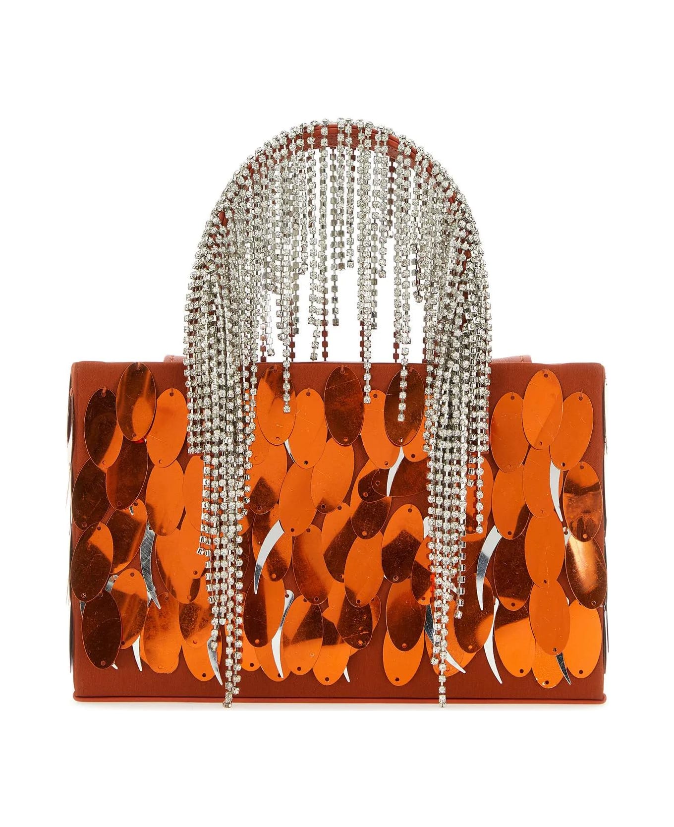 Handbag realized in fabric entirely covered by maxi sequins characterized by two jewel handles.