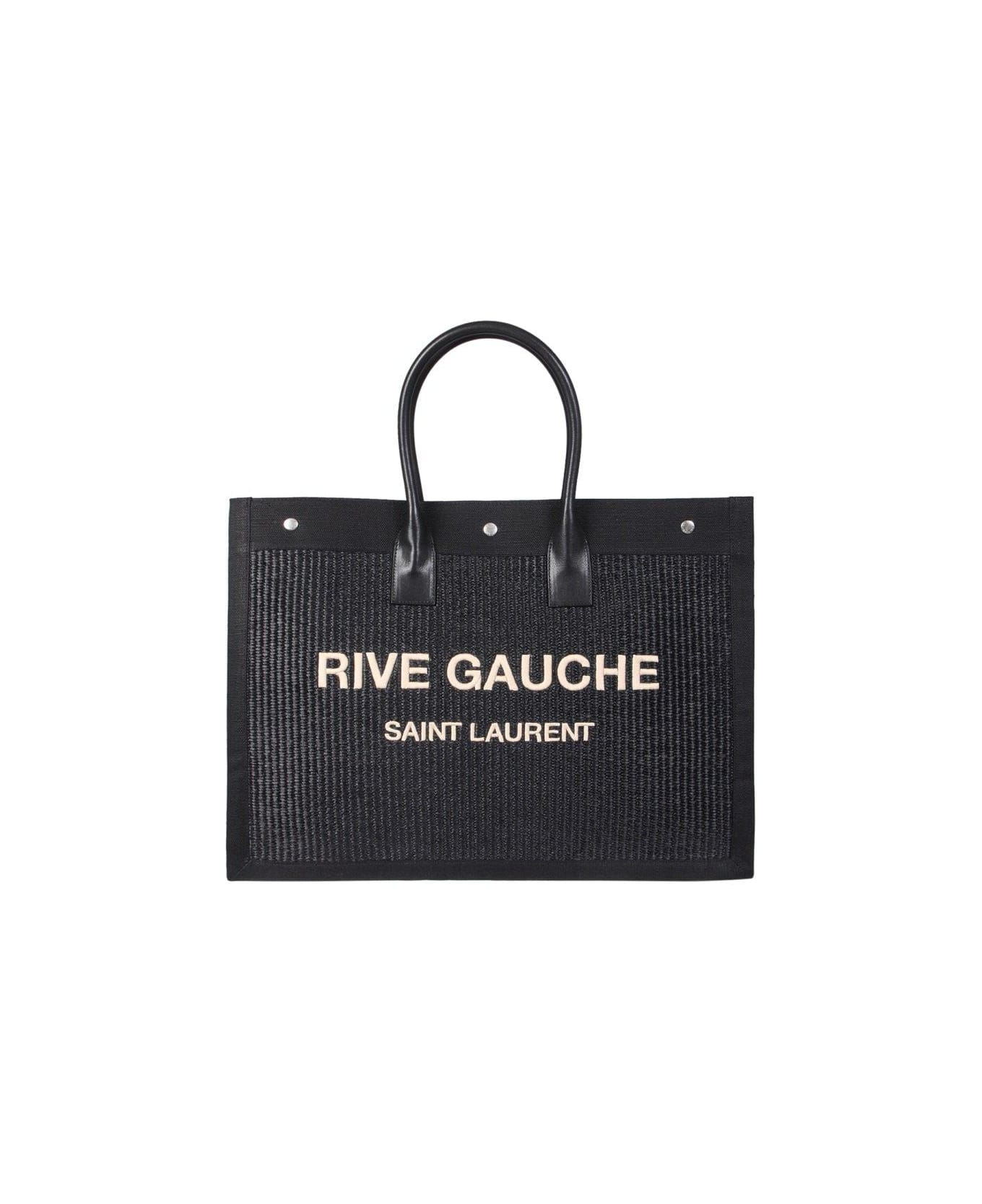 Shopping Bag Realized In Woven Raffia And Canvas Characterized By Rive Gauche Embroidery At The Front. - Two Round Leather Handles - Lateral Compression Buttons - Snap Button Closure - Lined Interior With A Zip Pocket composition: Exterior: 100% Raffia 63% Viscose 37% Cotton lining: 100% Fabric finishing: Silver Metal
