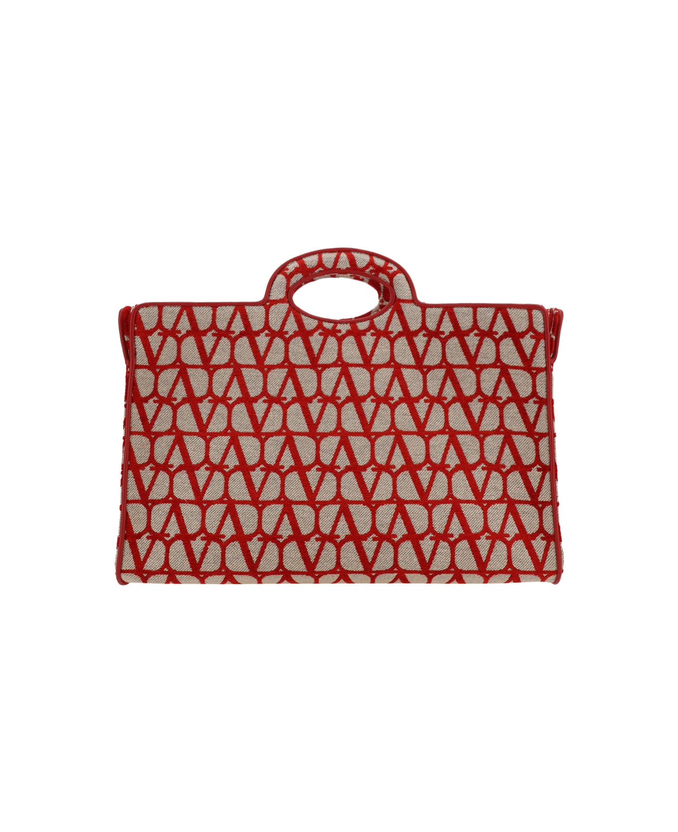 Sculpture tote bag by valentino garavani, double rigid top handles, removable flat shoulder strap, rigid geometric shape, interior leather pouch, pouch with top zipper closure, bag design with iconic all-over contrasting repeated vlogo monogram. Composition: 32% % Cotton, 31% % Polyester, 37% % Viscose