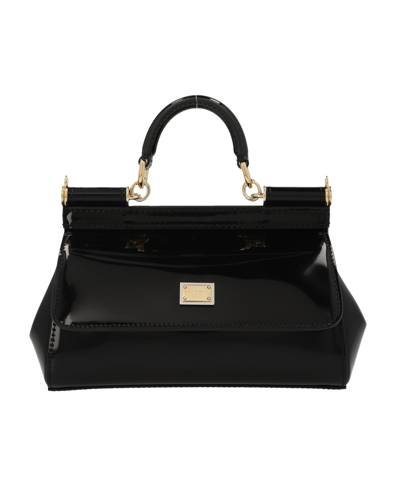 'Sicily' small handbag in shiny leather with front flap, magnetic closure, bigalvanic logo tag, top handle, adjustable and removable shoulder strap in shiny calf leather. Composition: 100% calf leather (Bos Taurus)