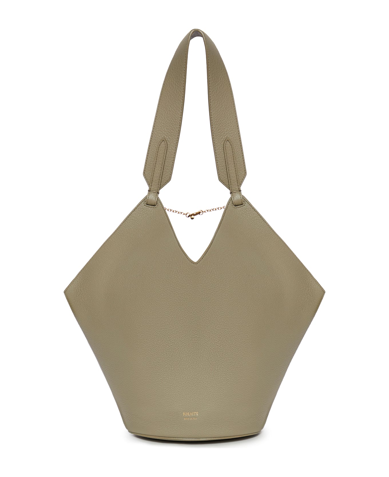 -Calfskin tote bag -Designed to be particularly lightweight -Rounded base -Jewel-like snap closure inside -Sage Composition: Calf Leather | 100% CALFSKIN