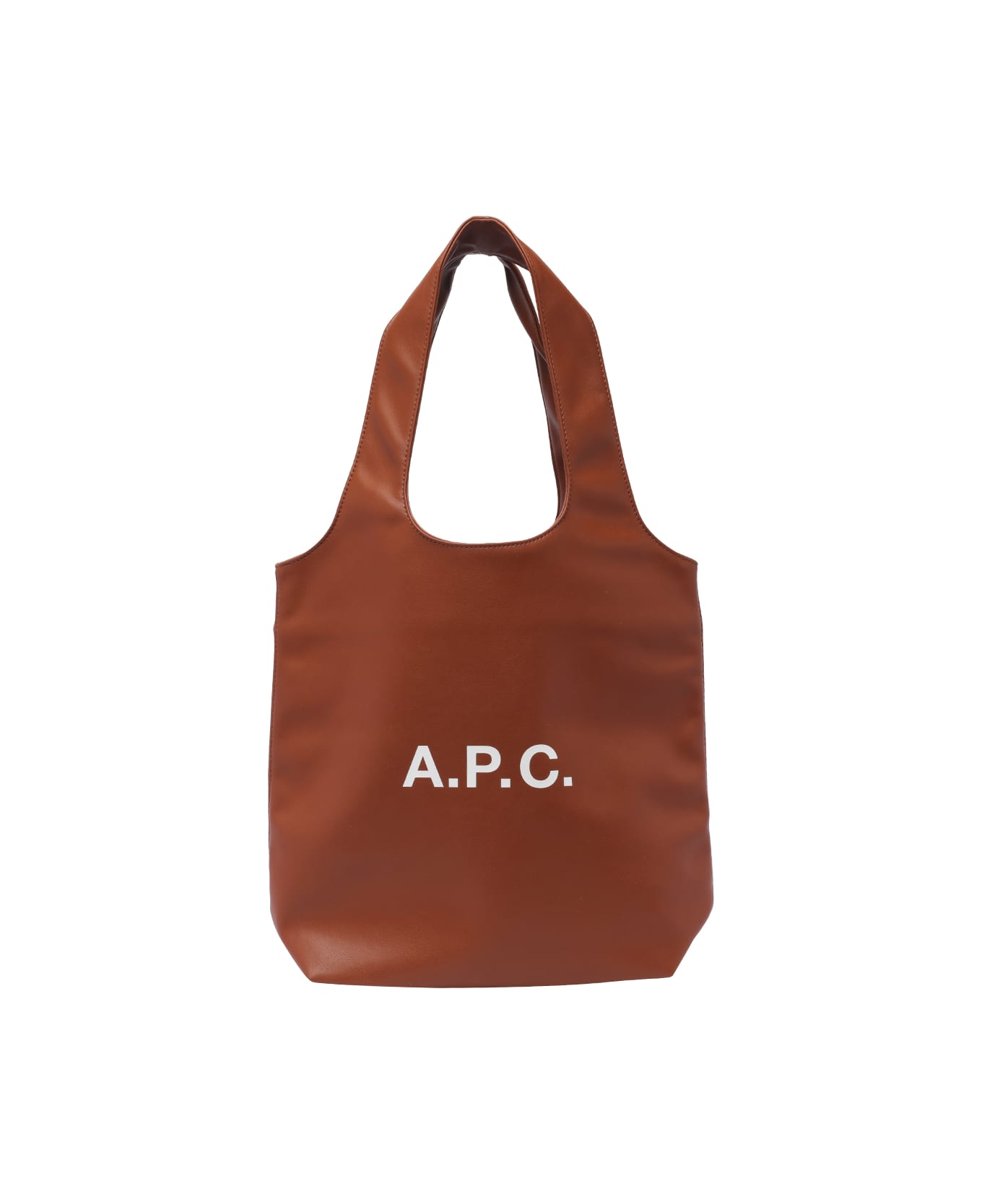 A. P. C. brown small Ninon Tote bag, one inner open pocket, double handle, frontal logo Composition: 5% Calcium Carbonate, 40% Polyester, 55% Polyurethane