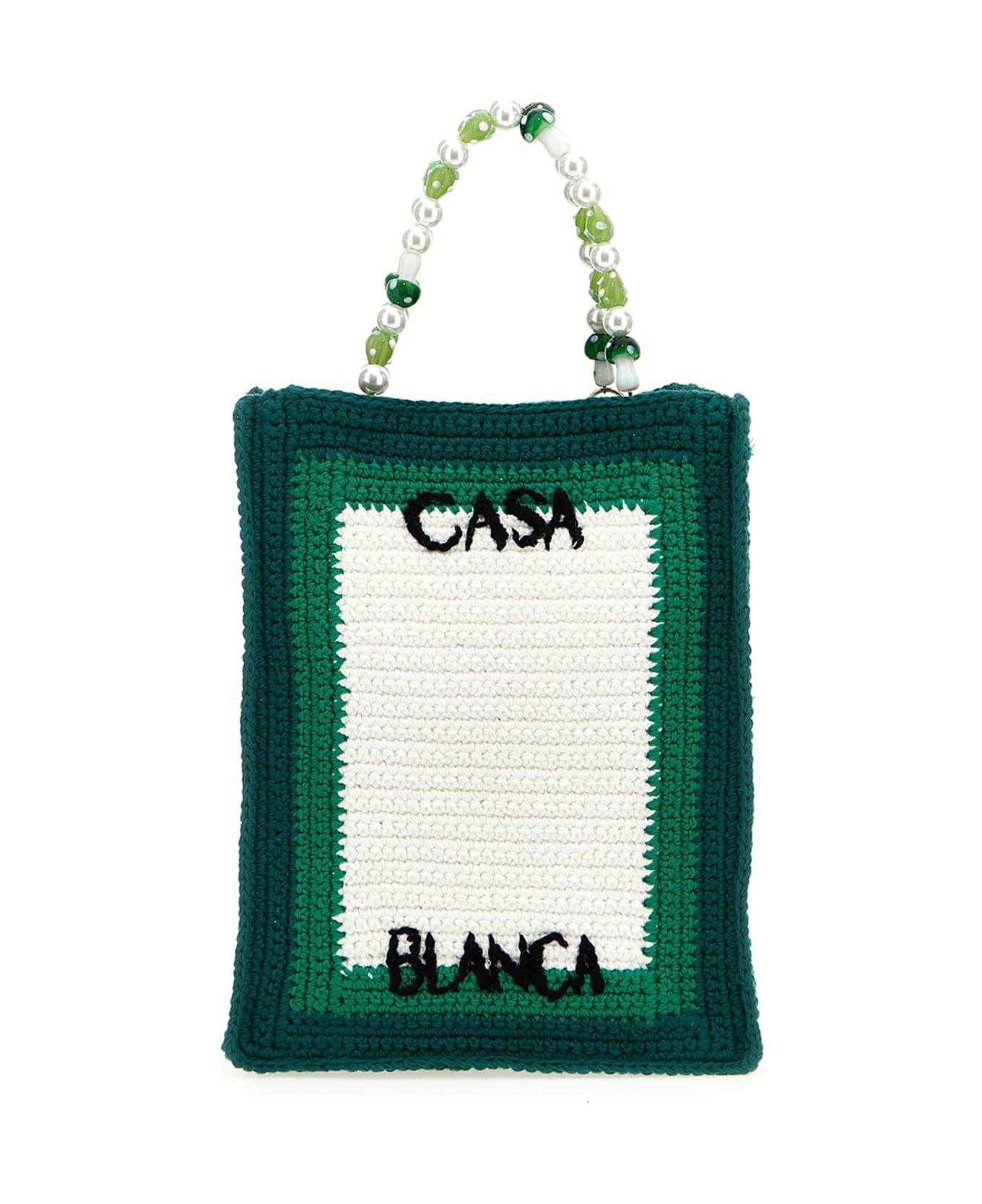 Tennis' crochet shopping bag with embroidered logo and a double bead handle. Composition: 100% cotton