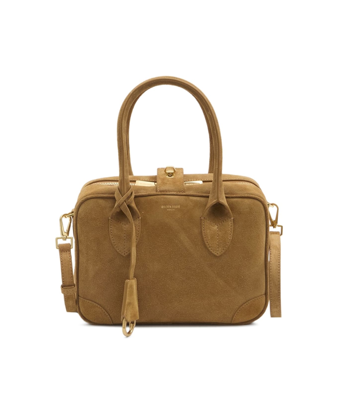 camel leather top handles detachable adjustable shoulder strap gold-tone hardware zip closure