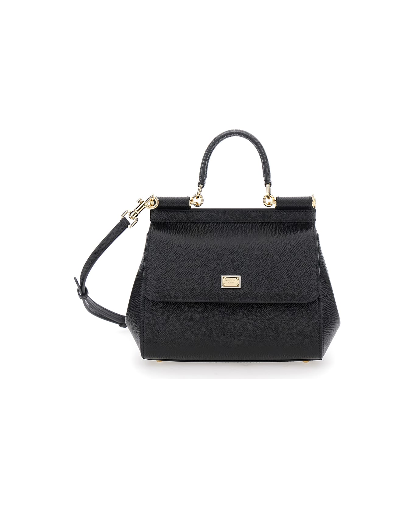 'sicily Medium' Black Handbag With Adjustable And Removable Shoulder Strap And Logo Plaque On The Front In Grained Leather Woman
