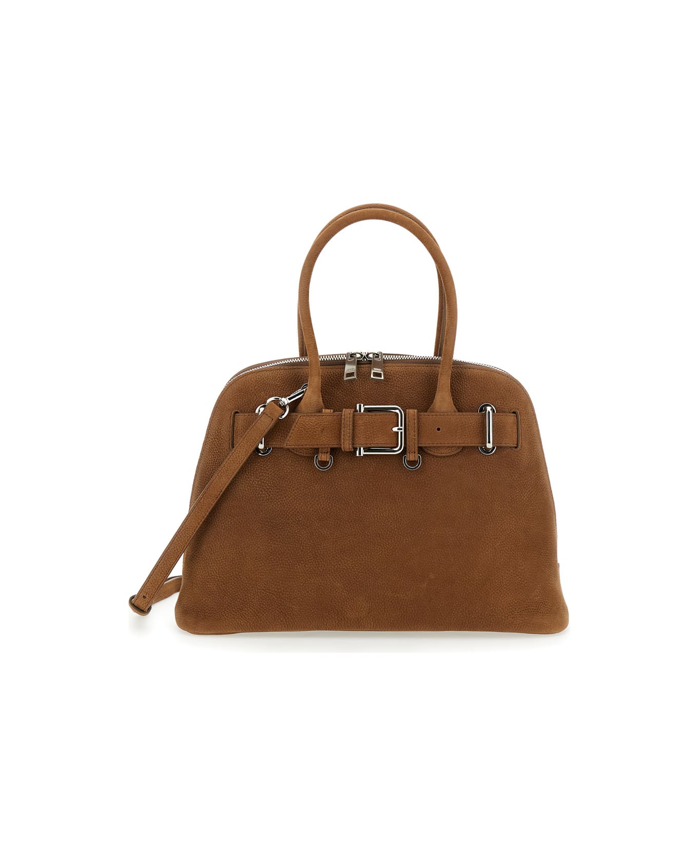 'zip Brocle' Brown Handbag With Belt With Metal Buckle And Top Shoulder Strap In Leather Woman