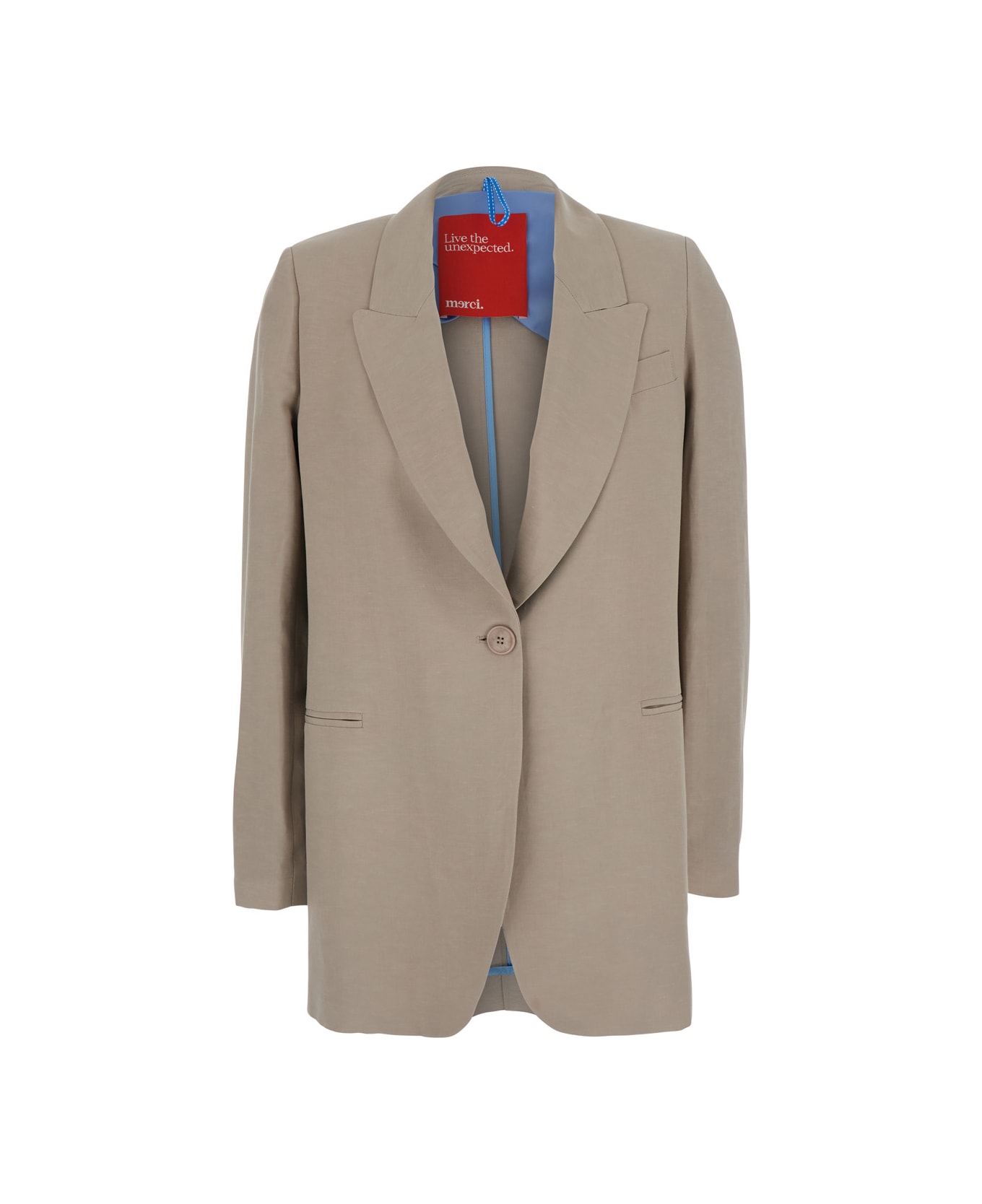 Beige Single-breasted Jacket With Peak Revers In Fabric Women