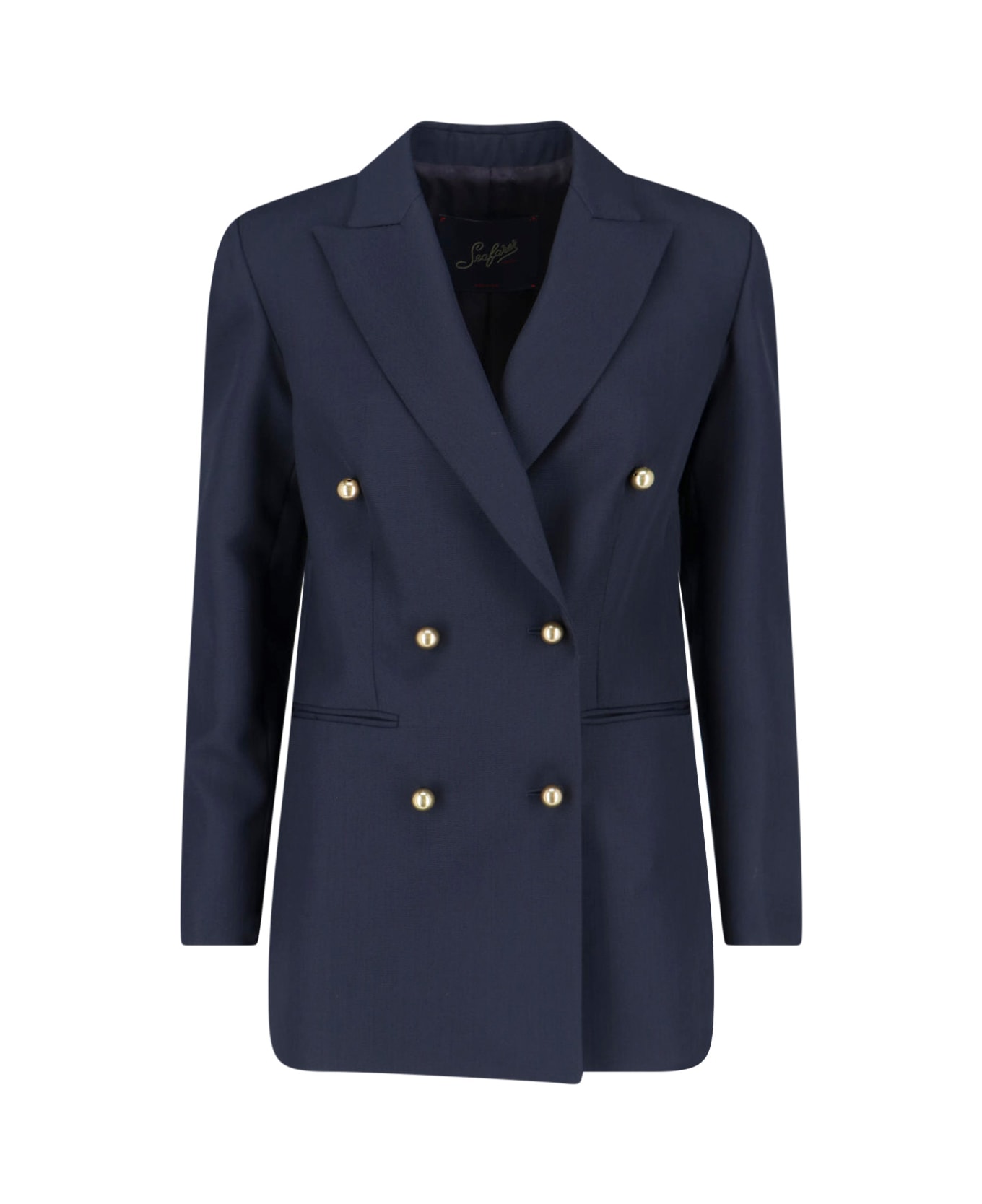 Seafarer 'Betty' double-breasted blazer in navy blue virgin wool with peak lapels, gold metal button closure, two side flat pockets, button cuffs, straight hem. Composition: 100% Virgin Wool