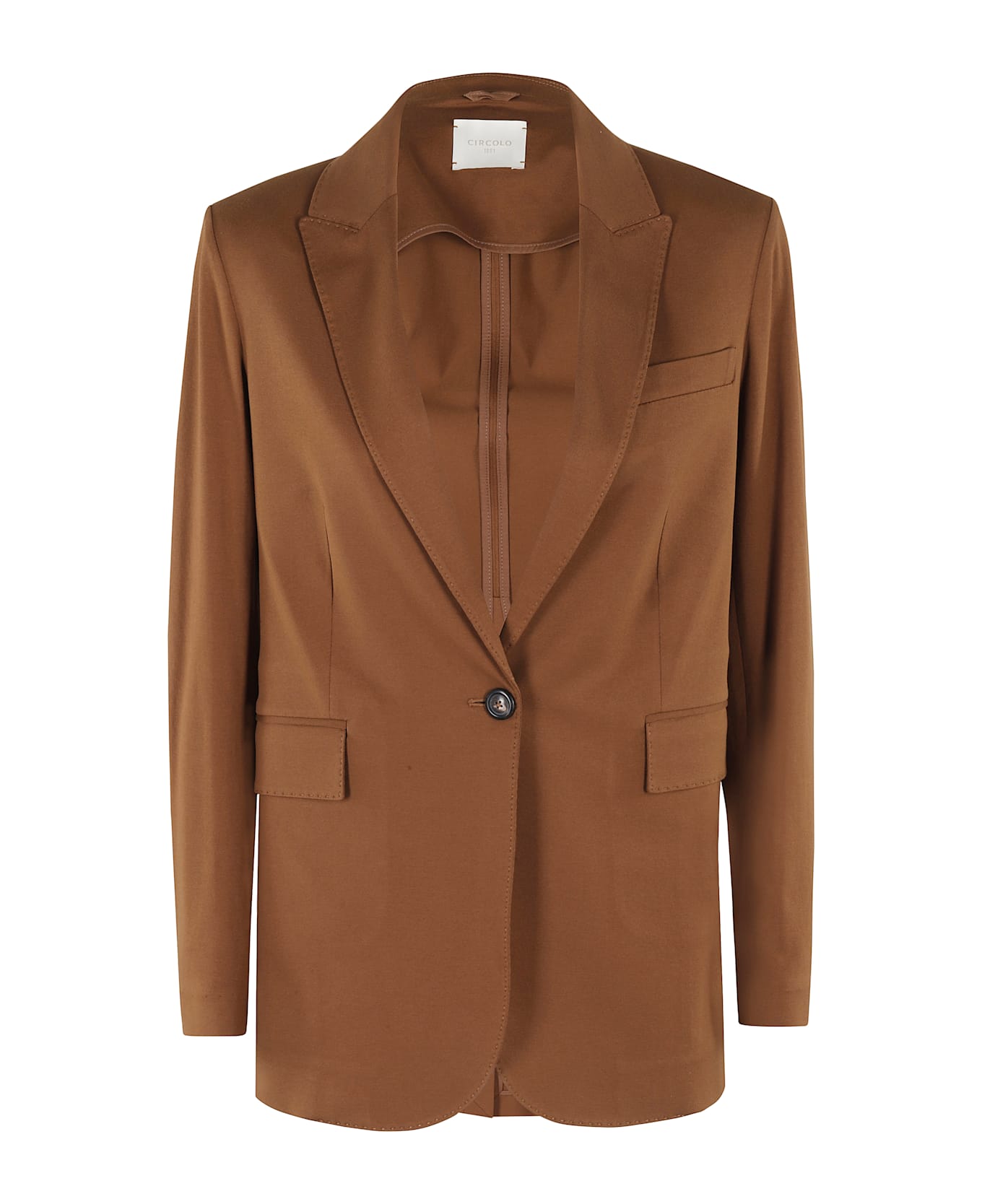 Premium Blazer - Circolo 1901 - Cocoa color - Woven in Filo di Scozia jersey - Peaked lapel neckline - Long sleeves with buttons at hem - Flap side pockets - Flush chest pocket - Single breasted button closure - Regular fit