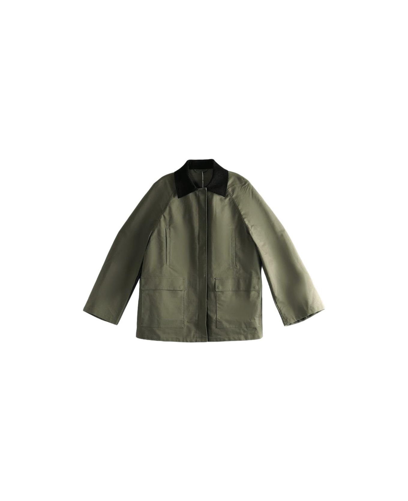 green flap pockets corduroy collar long sleeves straight hem