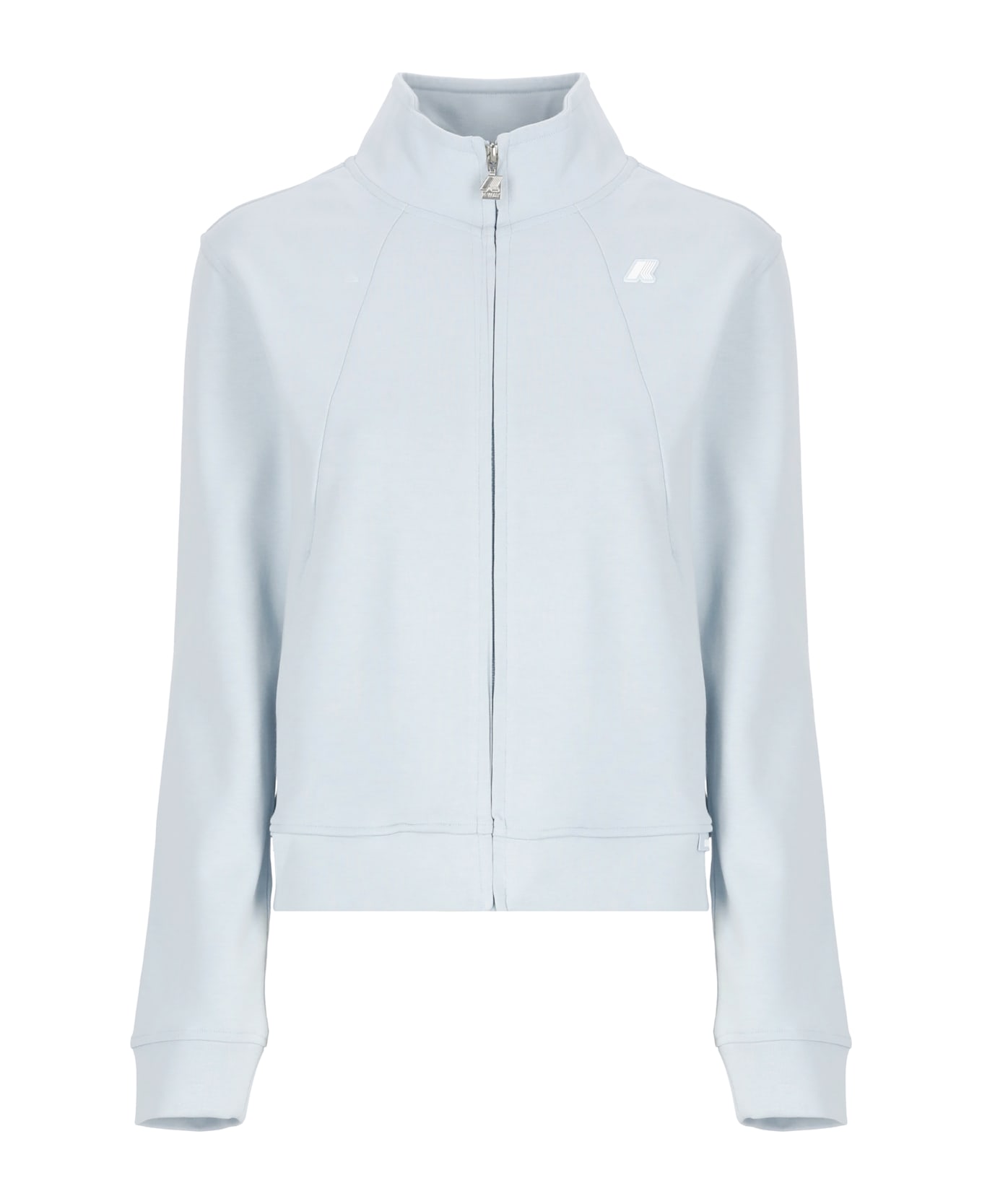 - Light blue K-Way cotton jacket for woman - High neck - Long sleeves - Front zip fastening - Two front slit pockets - Front contrasting color logo