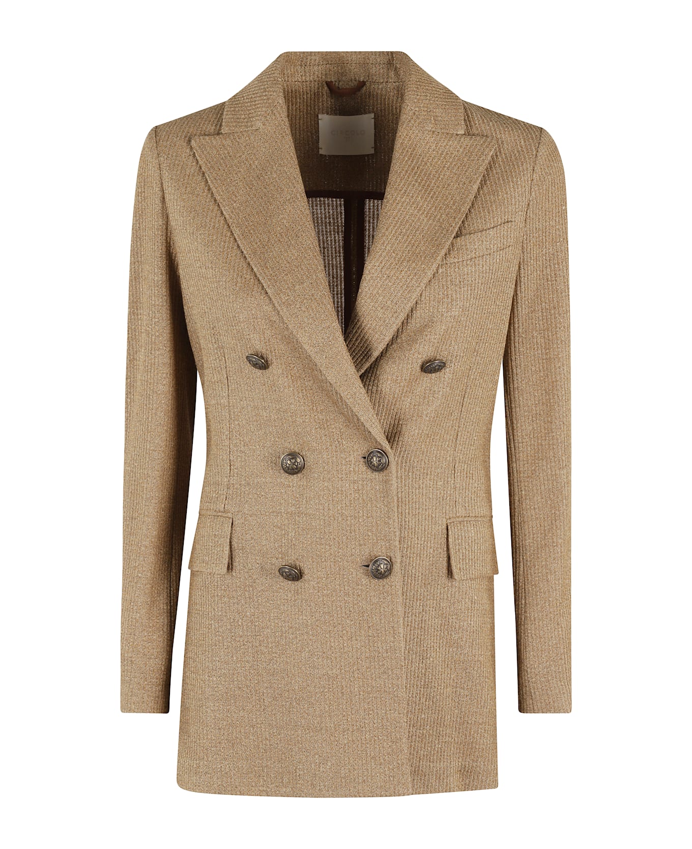 Double-breasted desert jacket -Circle 1901 -Fabric linen -Brown color -Neck with reverse -Double-breasted button closure -Back vent
