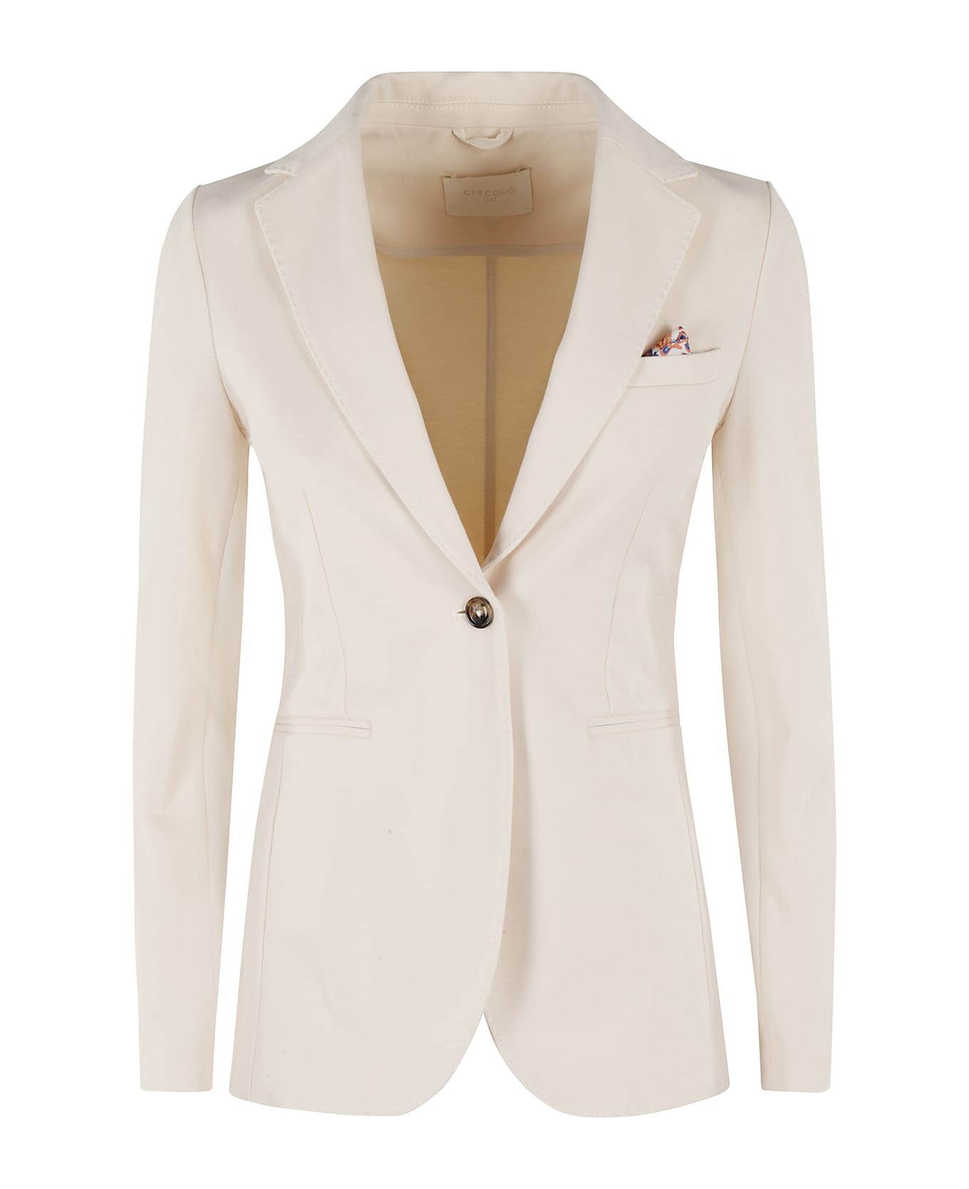 Blazer - Circolo 1901 - Cream color - Cotton pique fabric - Classic lapel neckline - Long sleeve with buttons at hem - Flush side pockets - Single-breasted button closure - Slim fit