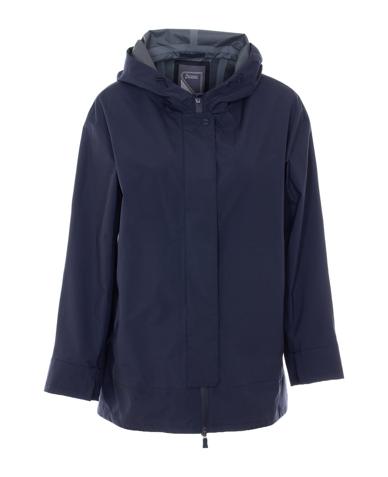 Herno blue jacket, zip and button closure, hooded, frontal pockets Composition: 100% Polyester