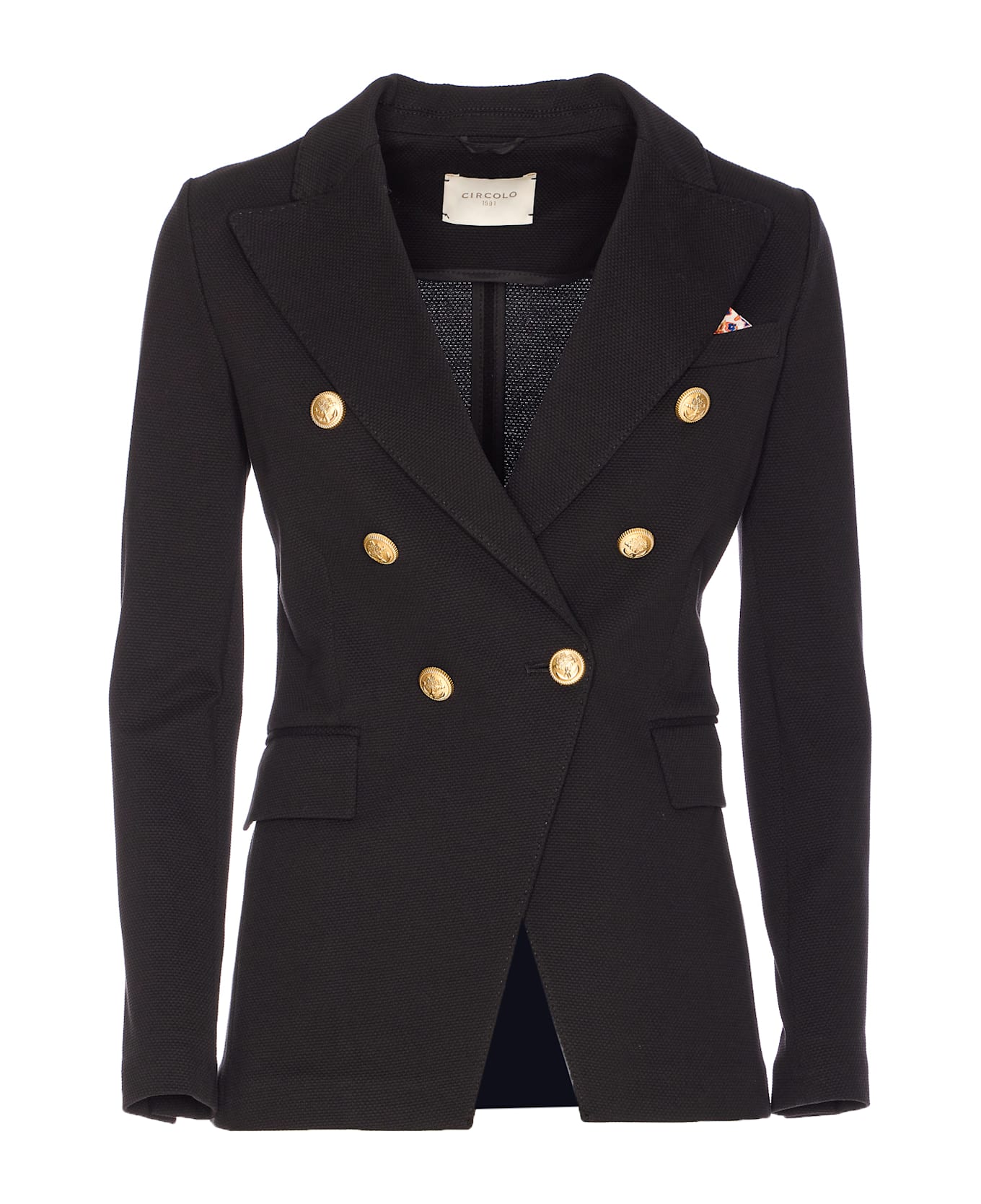 Circolo 1901 black Oxford jacket, long sleeves, double breasted buttons closure, pockets, buttons o cuffs, reverse model