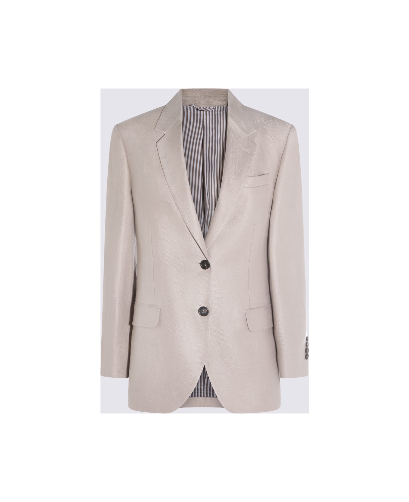 Pale oak linen blazer from Brunello Cucinelli featuring long sleeves, round hem, pockets, buttons fastening and regular vestibility. Composition: _, 100% Linen