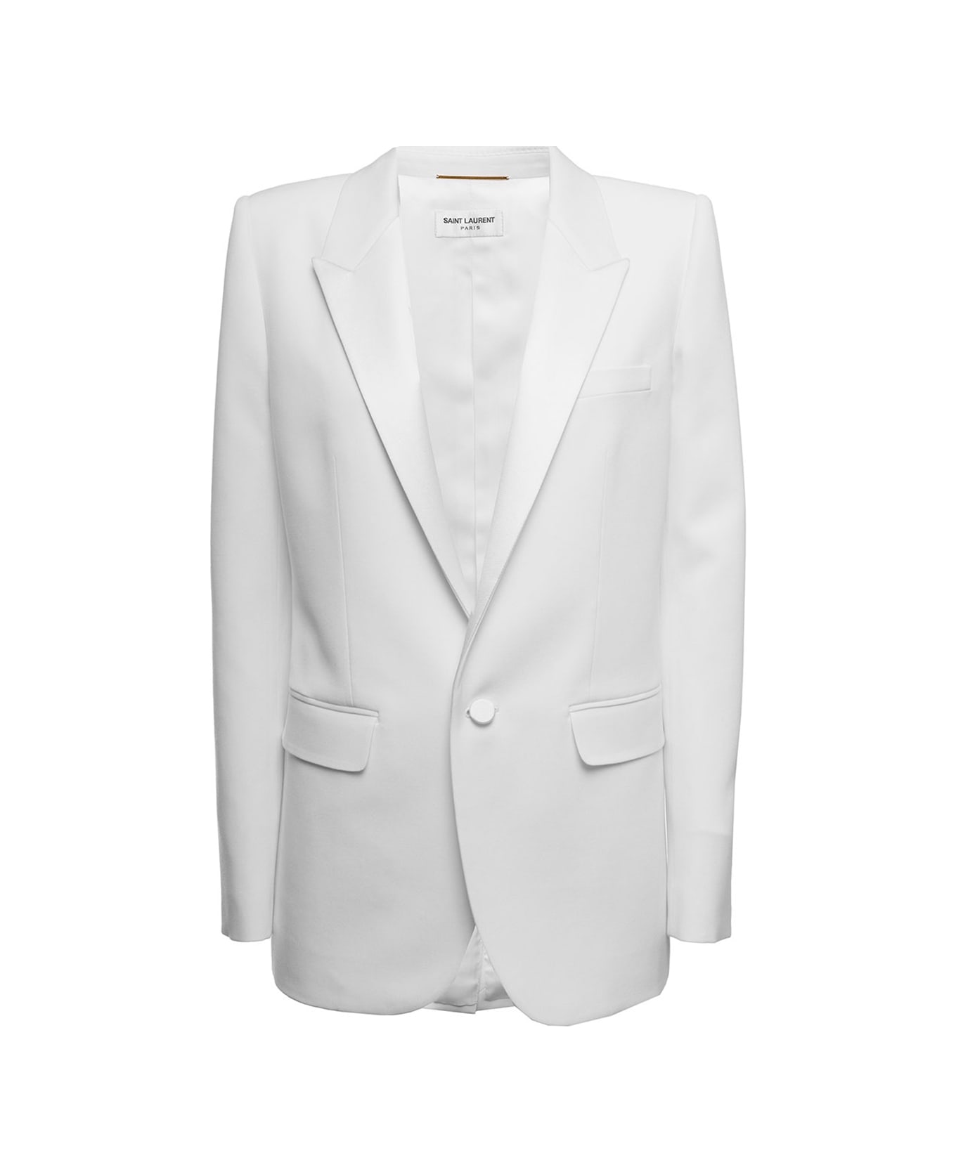 Saint Laurent Woman's White Grain De Poudre Wool Single Breasted Blazer