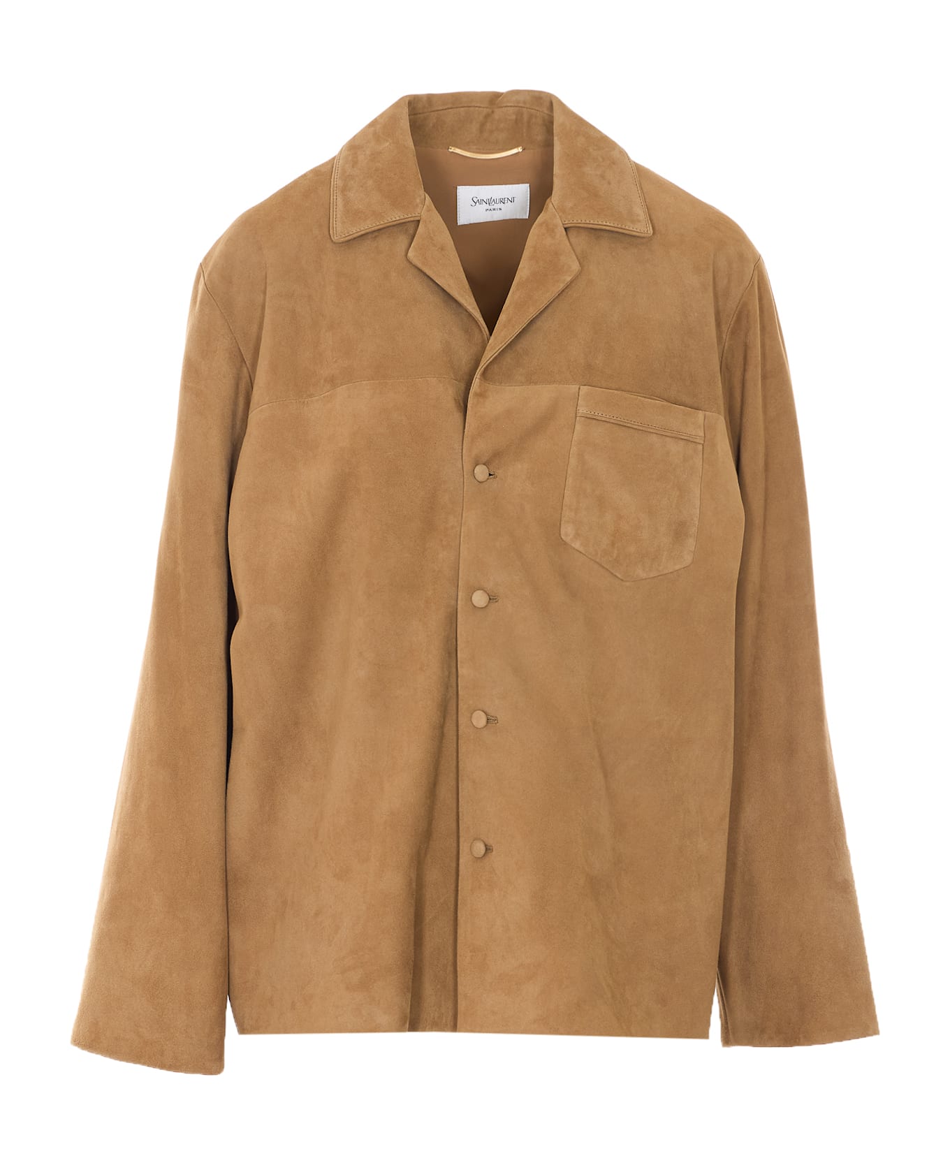 Saint Laurent tabac suede jacket with frontal buttons closure, long sleeves, regular collar, pocket on the front Composition: 100% Lambskin, 73% Acetate, 27% Silk