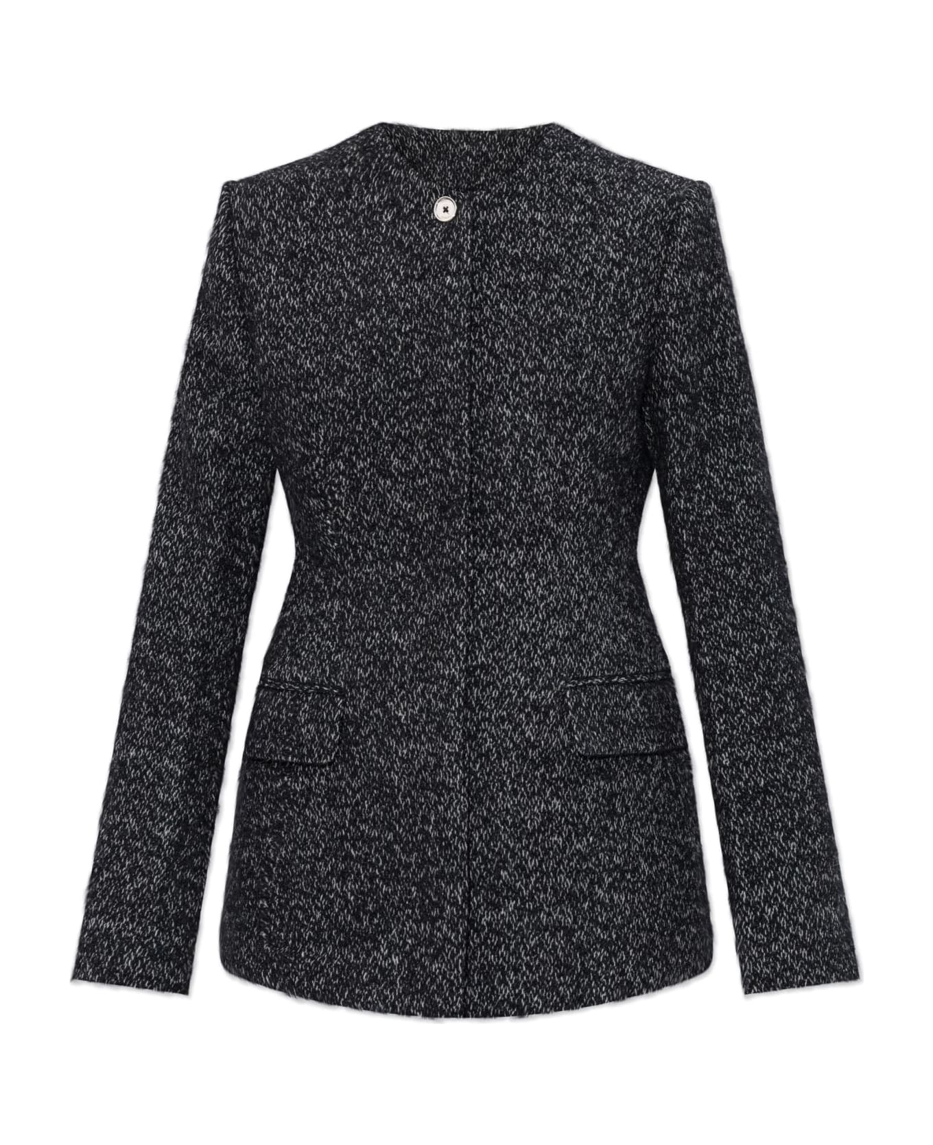 Experience refined sophistication with the TOTEME Wool Blazer a modern essential from the exclusive collection by renowned designer Elin Kling. Crafted from a premium knit blend, this blazer features a distinctive heathered salt and pepper finish in nuanced shades of gray and black, lending a subdued yet arresting appeal. The softly tailored silhouette elegantly flatters the figure, while the elongated cut gracefully falls below the hips, projecting effortless confidence. Subtle details set this piece apart: a striking single-button closure at the high stand collar an illuminated accent against the refined minimalism takes center stage in lieu of a traditional lapel. The absence of classic patterns ensures an urban polish, making this blazer a versatile companion for both tailored ensembles and modern, everyday looks. Why choose this product? Luxurious, structured woolen knit for lasting elegance Unique collar design with a radiant button closure Contemporary, figure-enhancing silhouette Exclusive creation by progressive fashion house TOTEME Refined
