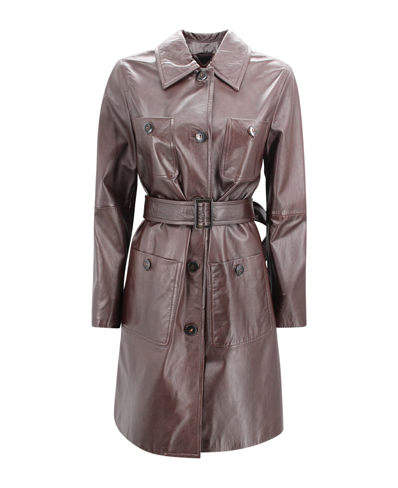 Features Material: 100% leather Fit: regular Length: mid-length Sleeves: long Collar: classic Closure: buttons Belt: adjustable Front pockets: patch Weight: lightweight