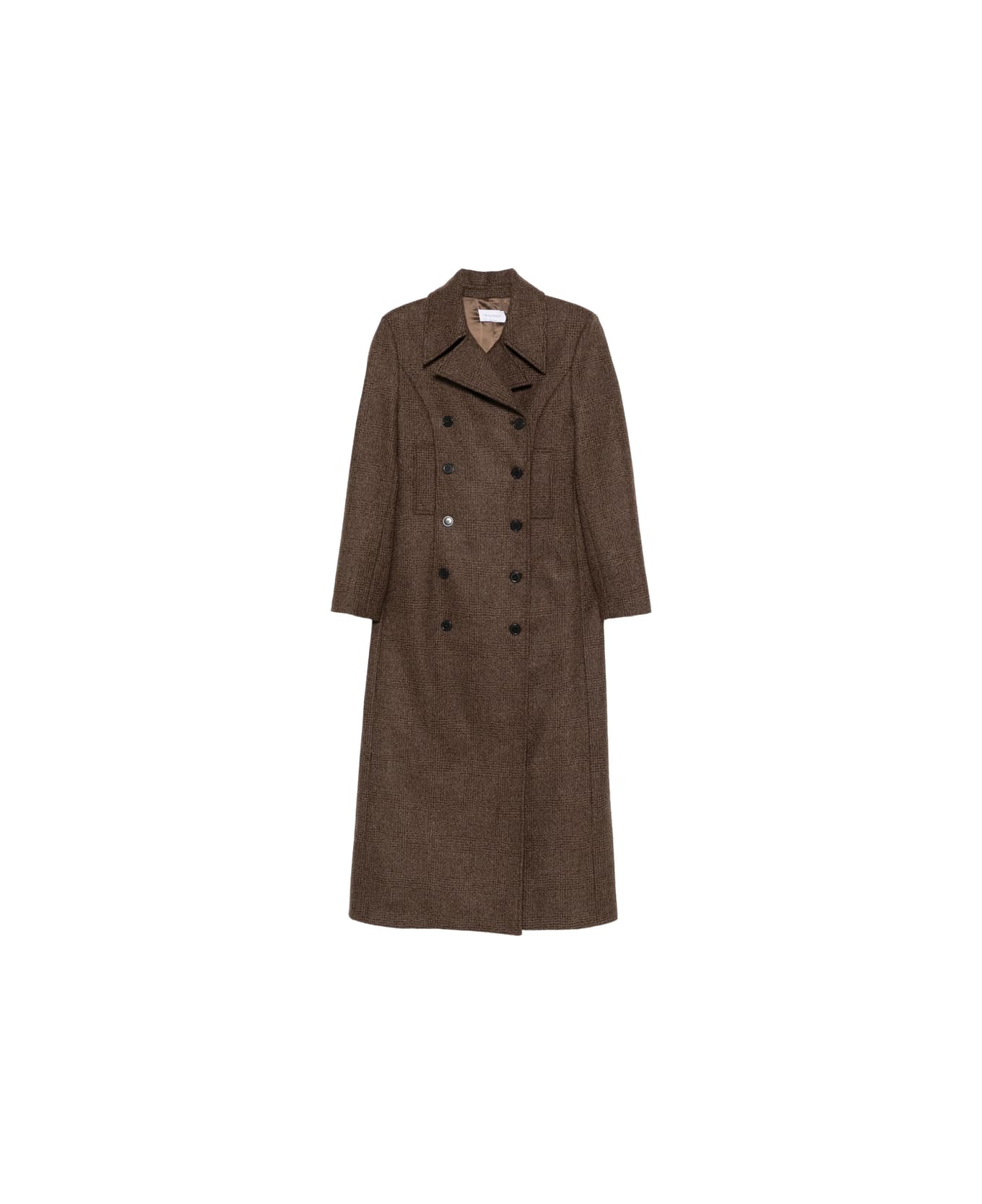 chocolate check pattern double-breasted button fastening long sleeves notched lapels