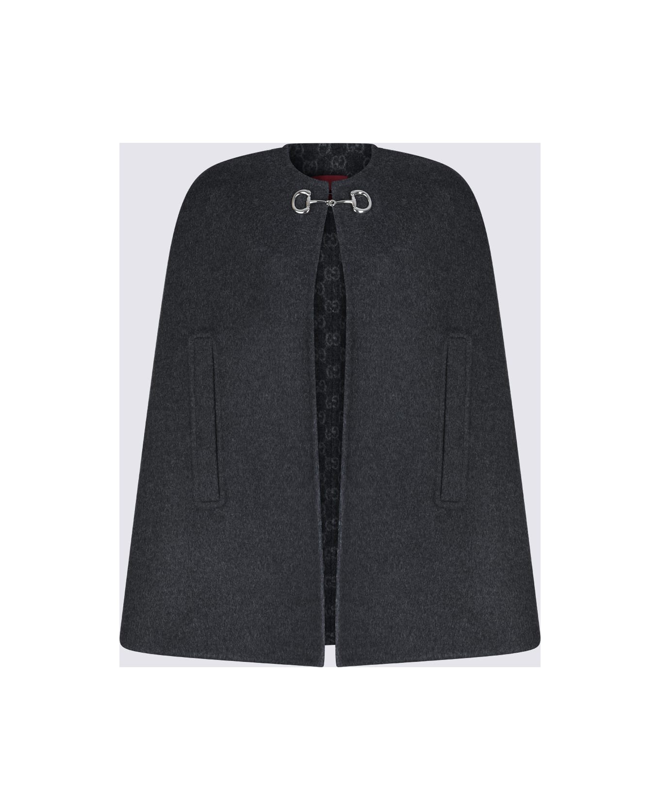 Grey wool cape from Gucci featuring round neck, cheswt welted pockets, silver tone metal details and mid length. Composition: _, 99% Wool, 1% Silk